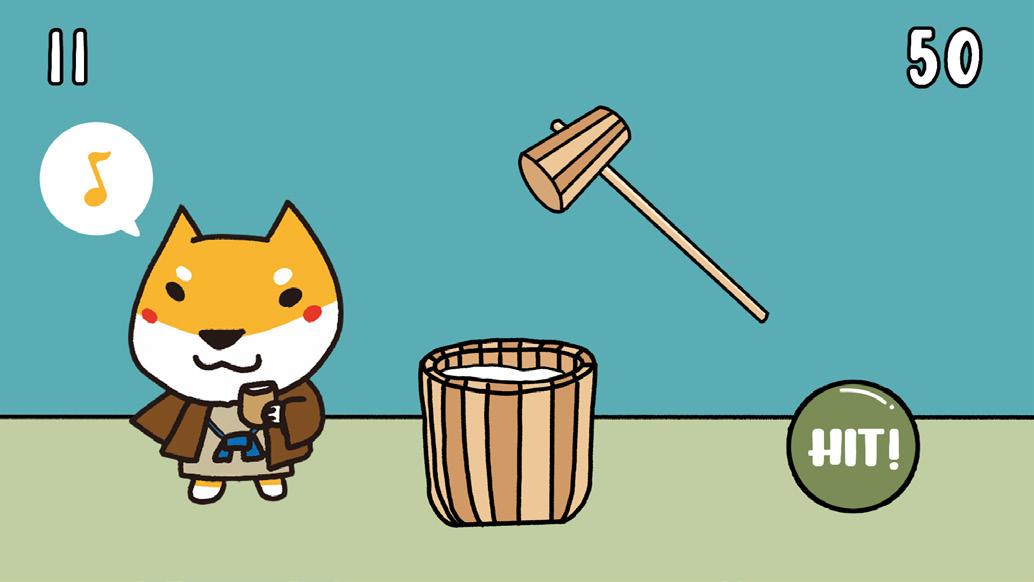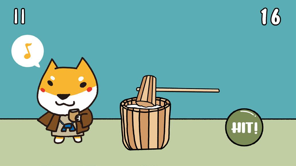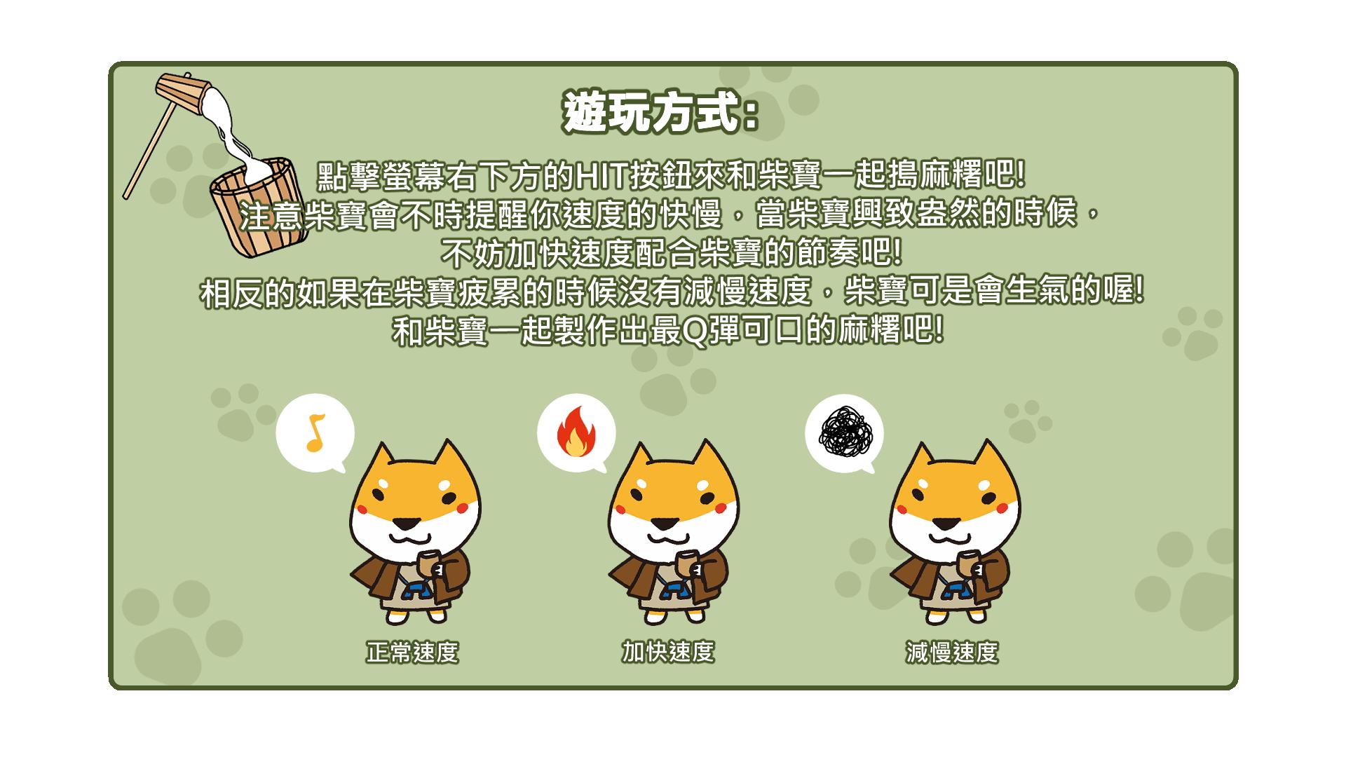 點擊螢幕下方的按鈕來引導柴寶搗麻糬吧!注意柴