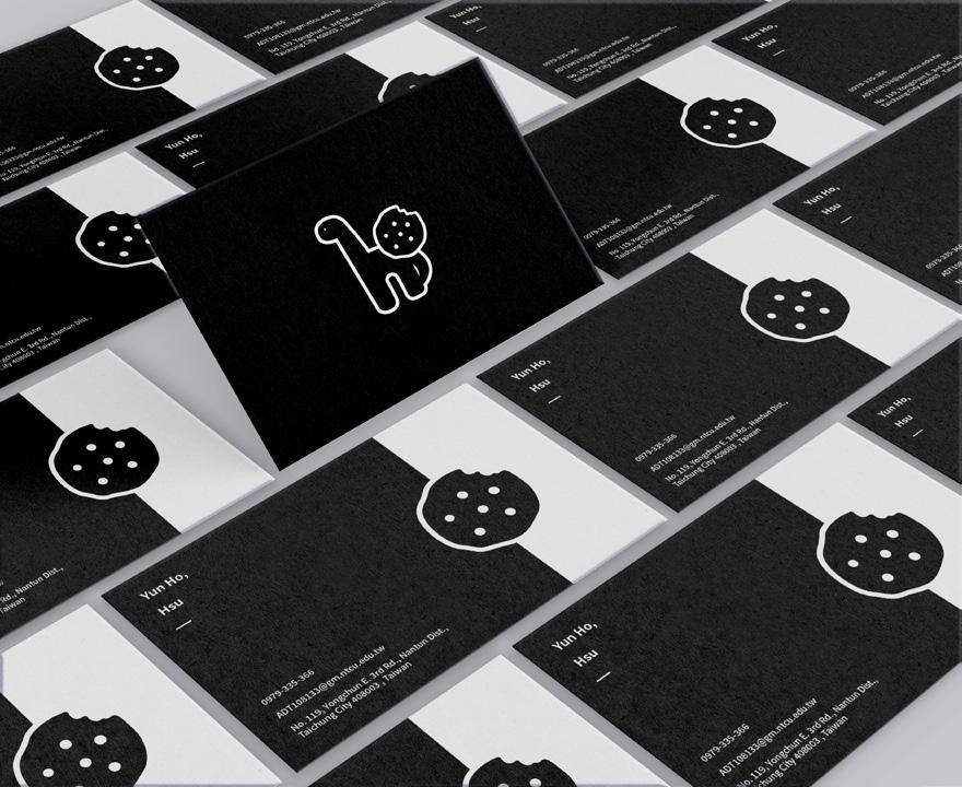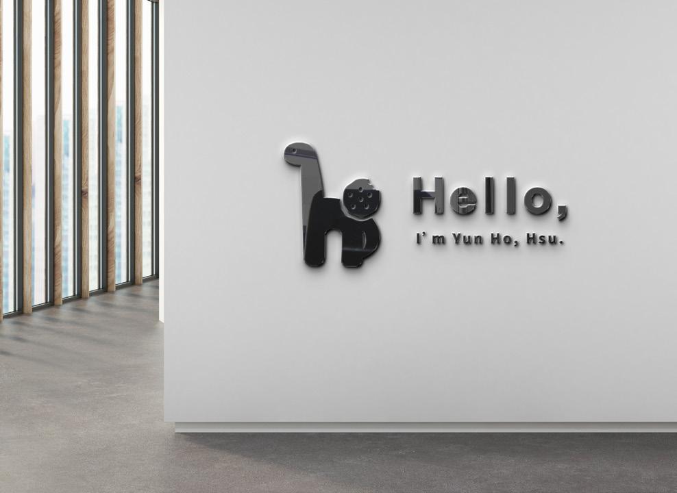 LOGO整體風格雖然簡約,卻不失活潑有趣。 以自己的名字最後一個字"合"的英文"ho"為發想,h使用我最喜歡的腕龍形象, o則是化身成可愛的餅乾,並且被偷偷咬了一口,究竟是誰肚子餓了呢?