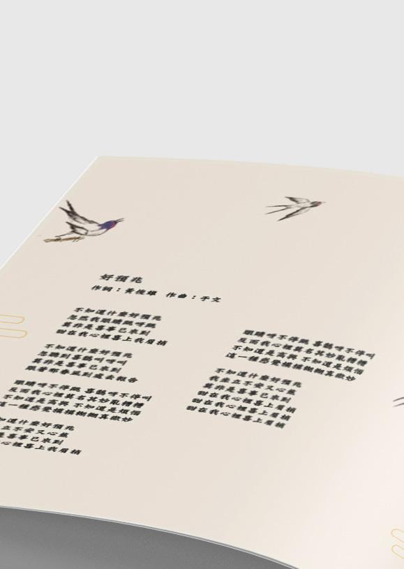 歌詞本收錄 10 首傳統新年歌曲,呼應主題融入了中國元素,