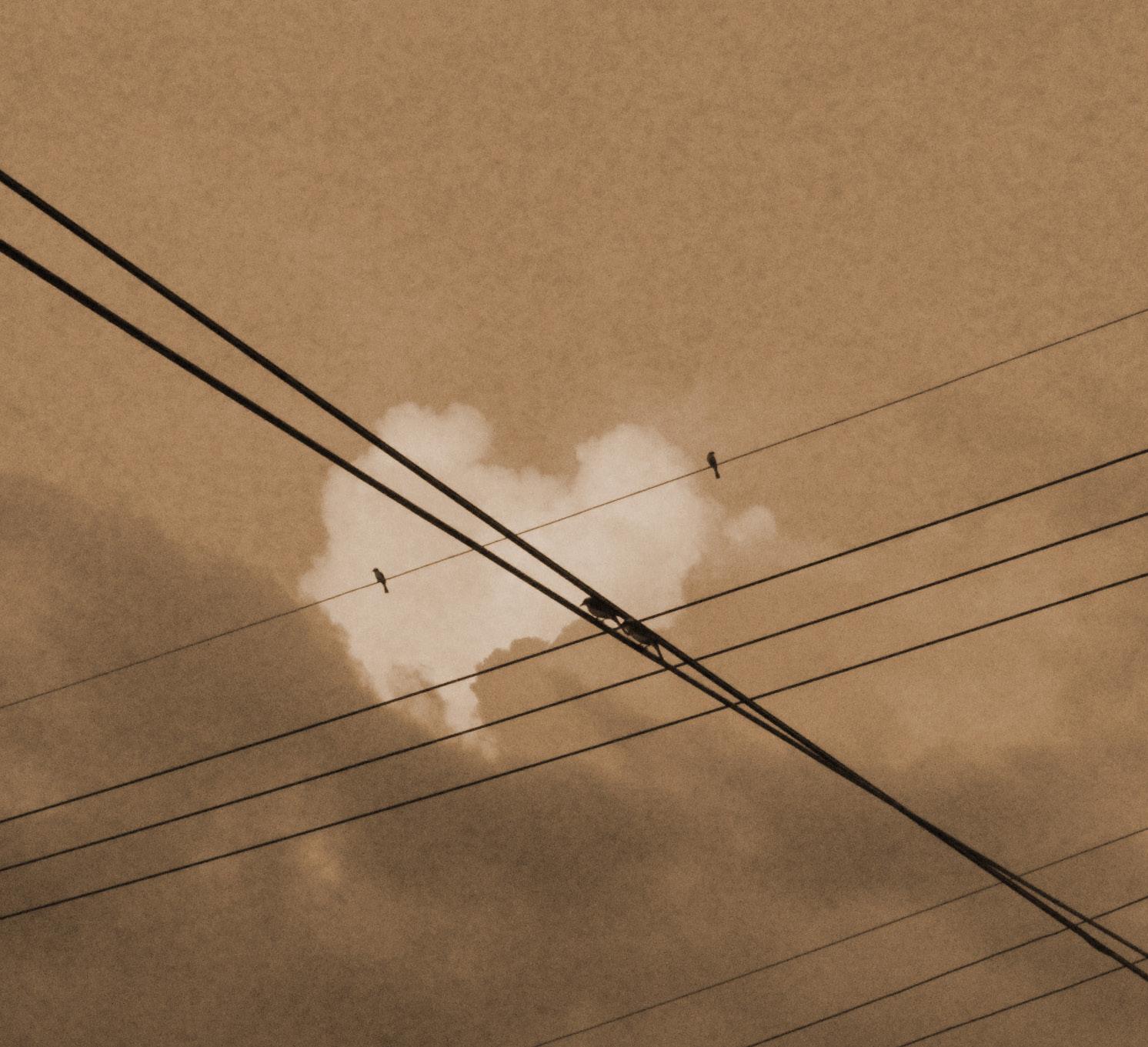 圖中覆蓋大量白點營造刷舊、 斑駁感, 而手機使用搶眼的鈷