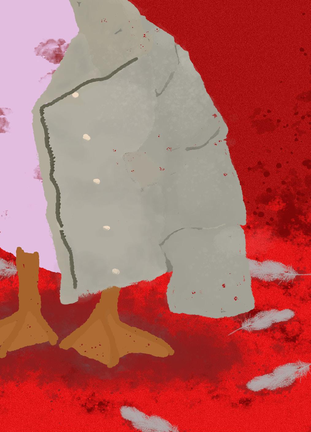 圖中的動物身上披著羽絨外套, 全身卻被拔光了毛, 其實很