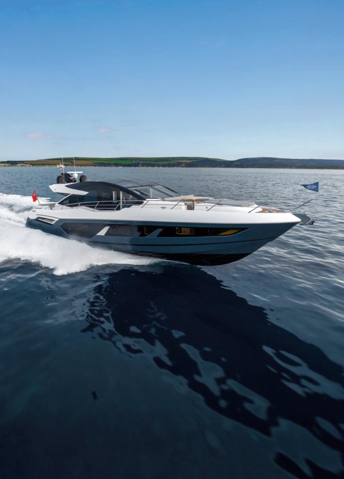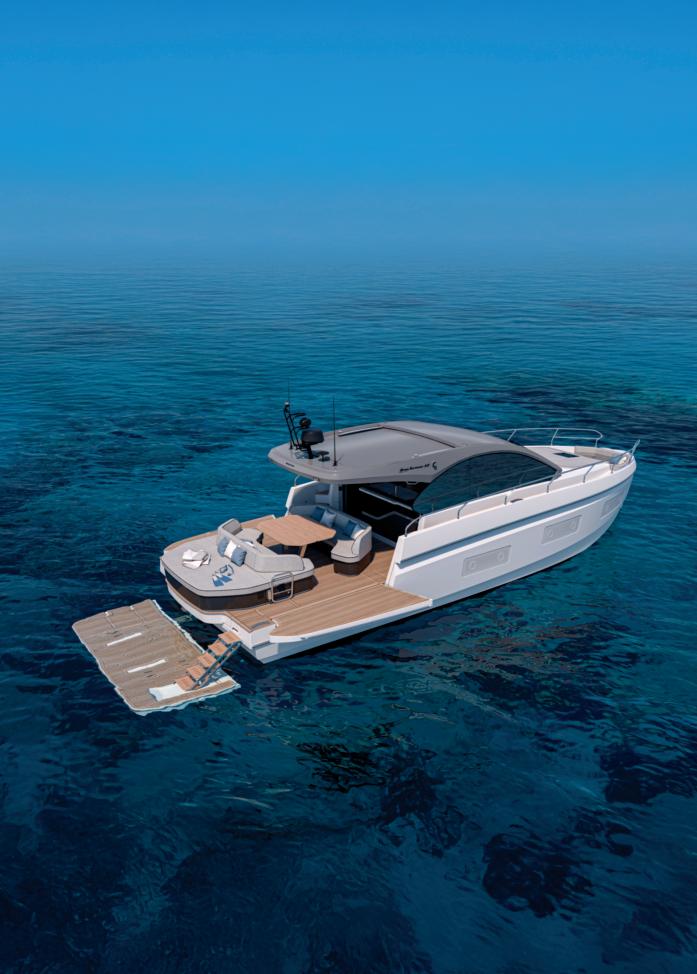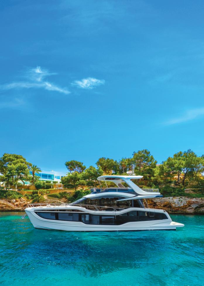 Every yacht signed by Absolute Yachts tells a story. The Navetta 58, named Andromeda, draws inspiration from the mythical princess whose beauty and strength earned her a place among the stars. Like its namesake, Andromeda embodies elegance and innovation, marking a new chapter inAbsolute’s design evolution. Distinctive features include large ‘squircular’ bow windows, glazed cockpitgunwalesforunobstructedviews,andaspacious, customizable cockpit terrace sheltered by the flybridge. The wide platform ensures easy sea access, while the step-free flybridge serves as a panoramic terrace with modular seating, BBQ, and optional solar panels. Inside, versatilelayoutsandrefinedfinishesdefinebright,serene spaces,withaforwardmastersuite,VIPcabin,andadaptableguestroomofferingultimatecomfortandstyle.
