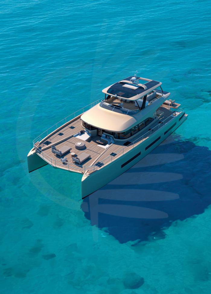 The Power 80 is the flagship ofFountaine Pajot’s luxurymotoryacht fleet, conceived as the power version of its 80-foot catamaran,Thíra 80.Measuring24meters,itcombineseleganceandpower,offeringup to12guestsultimatecomfortandprivacy.Designedforlong-distance journeys,itmoveswiththefluidityandsilenceuniquetoacatamaran. Over 400 square meters ofinterior and exterior space features luxurious suites, an owner’s cabinwithwhirlpool bath, expansive lounges, and an ergonomicallydesigned rear deckthat doubles as a beach club, offeringsafeandeasyseaaccessforswimmingandwatertoys, ensuringtheultimateinleisureandfreedomatsea.Poweredbytwin 480hpengines,withoptionsupto900hpeach,itenableslong-range cruisingincludingtransatlanticpassages.Customizablelayoutsallow forsocializingorprivacy,whilecrewquartershostfiveprofessionals instyle.Expansiveglasssurfacesandretractablewingsprovidepanoramicviews,creatinganimmersiveexperienceindiscreetluxury.