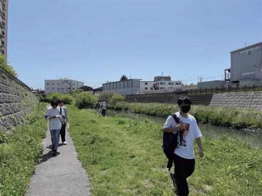 ——(6班)歩いてみて、堤から道路に降 りる道が少ない。歩き始めると草が多く てなかなか歩きたくないと思われるので は。
