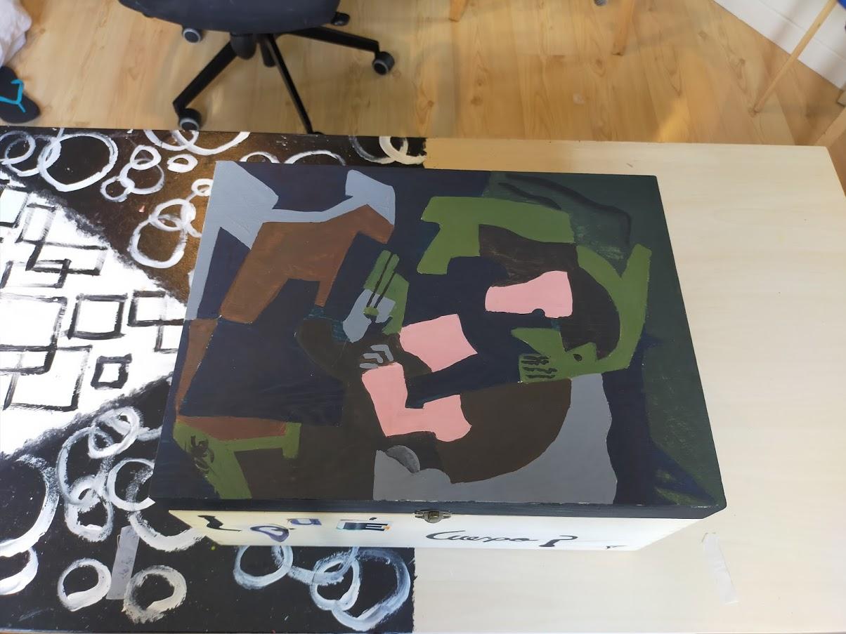 The example was made using the same materials as in the kit, also inspired by Picasso and his way of making human faces. For a better hold of the painted felt, I used a silicone glue in a bottle, included in the kit.