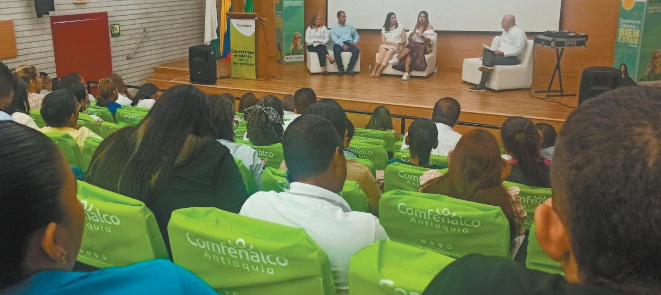 con Juan David Ruiz Olaya, de la empresa Índigo. Asimismo, se destacó el conversatorio “Conversemos de Bienestar con las empresas” con Juliana Caldas Medina, jefe de calidad de vida y comunicaciones del Hospital Pablo Tobón Uribe; con Carlos Andrés Duque Bedoya, líder de Entornos Sanos de Noel y con Mildrey; Jasmín Marín Henao, coordinadora Ambiental y Social del CCC Ituango. Este evento es una manera de celebrar los 65 años de Comfenalco Antioquia que se conmemorará en agosto próximo y una oportunidad para hablar de talento y del