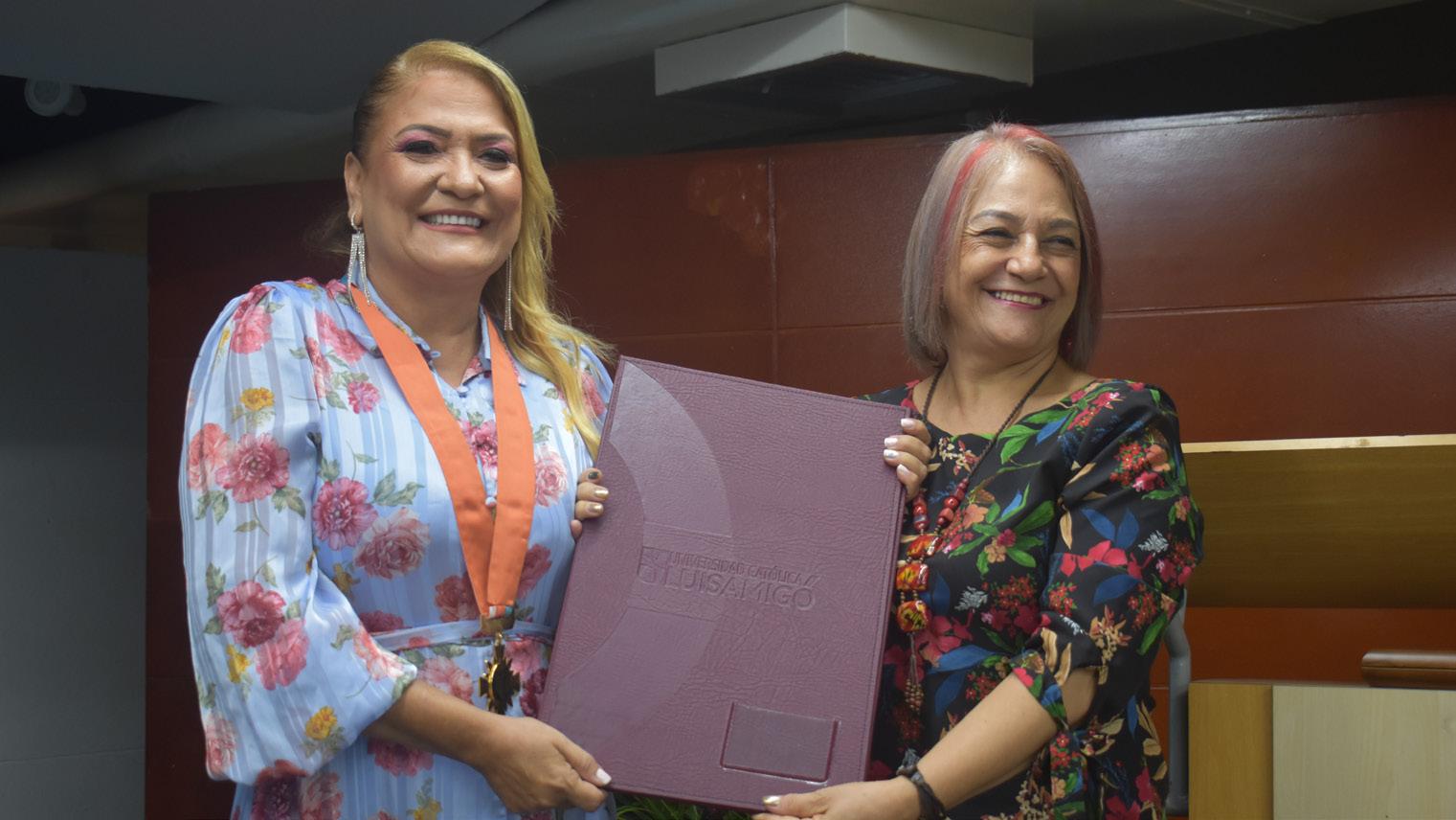 Marisol Aristizábal Piedrahita egresada del programa, cuyo trabajo y entrega es ejemplar de gran aporte a la región de Urabá, haciéndola merecedora de la medalla “Amor Caritas”, Vicente Serer Vicens, al mérito social. por su desempeño social a través del Proyecto de Atención Integral a niños, jóvenes y adultos con necesidades educativas especiales, discapacidad, talentos excepcionales y acompañamiento a familias, cuidadores, docentes y comunidad del municipio de Apartadó. Marisol ha sido, formadora en seminarios relacionados con el diseño de ambientes de aprendizajes