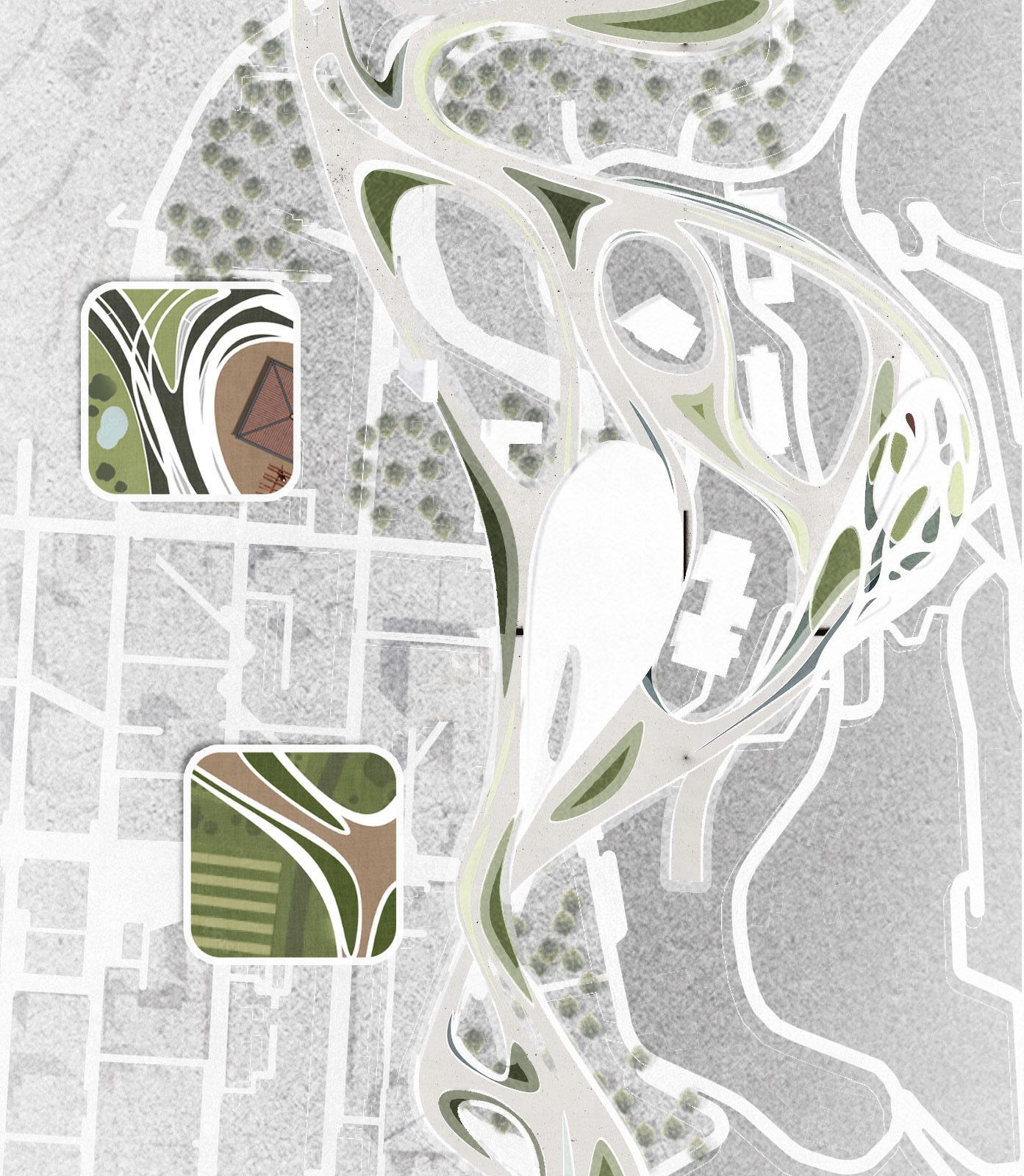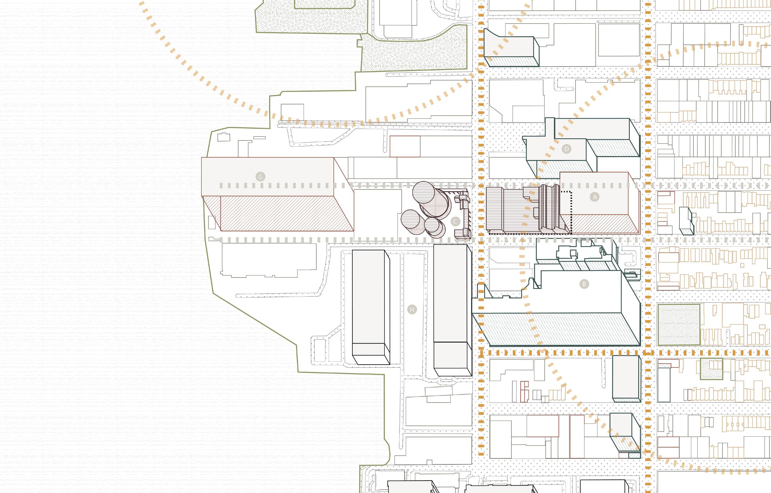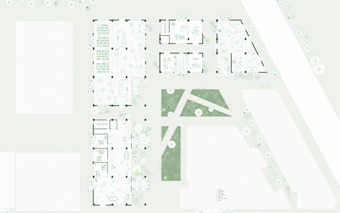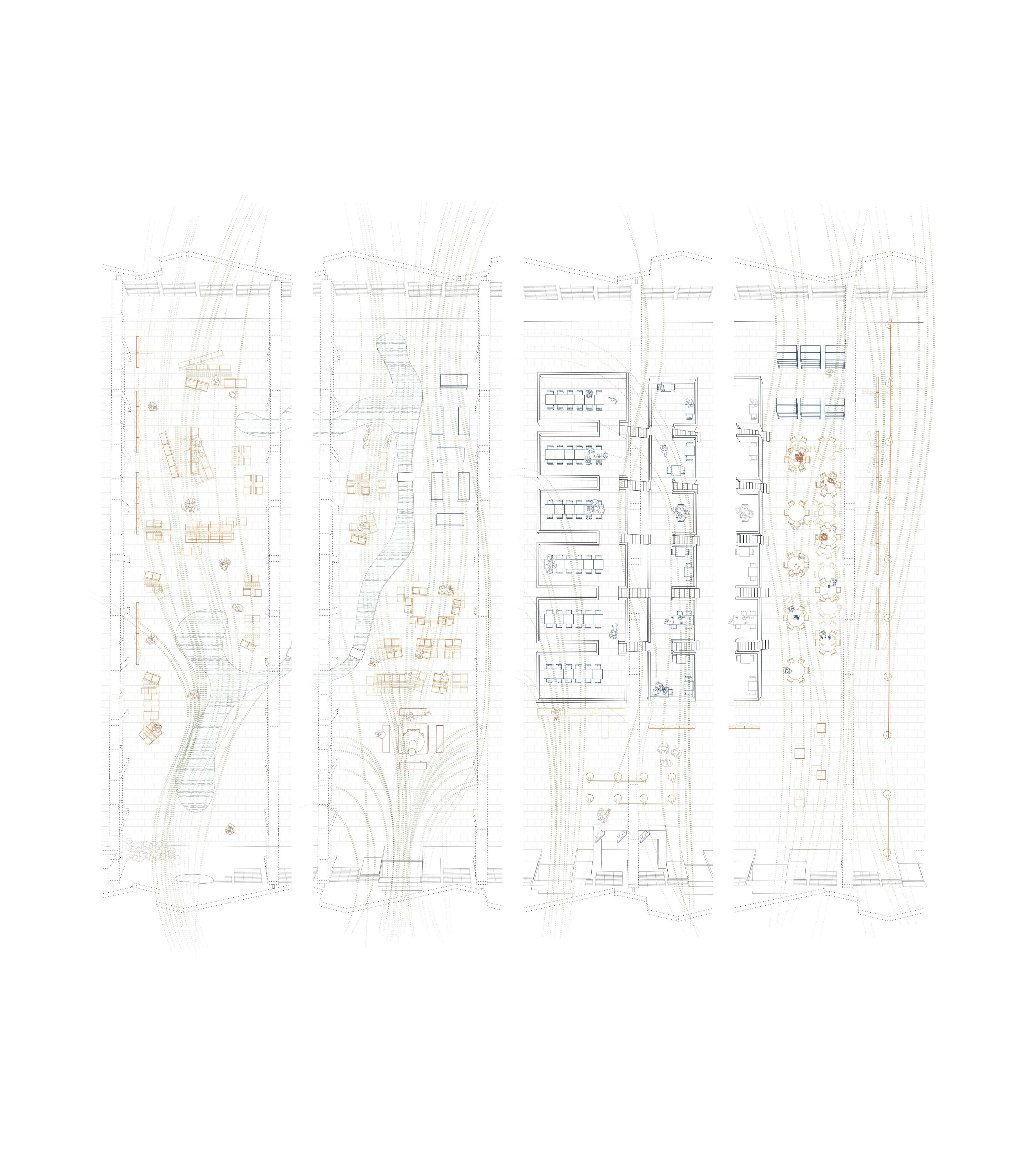 By bridging immigrant herbal traditions, communal care, and institutional healthcare, the project aims to cultivate an environment where culture and wellness co-evolve and where the building acts as an operational mediator rather than a prescriptive container. The interlace layout becomes the architectural driver: it generates a series of in-between spaces where programs overlap, transition, and coexist. These interweaving conditions allow activities to expand and contract over time, providing a structural flexibility that reflects how community practices unfold. The armature therefore operates not as a rigid hierarchy but as a spatial gradient that supports multiple forms of learning, production, and wellness simultaneously.
