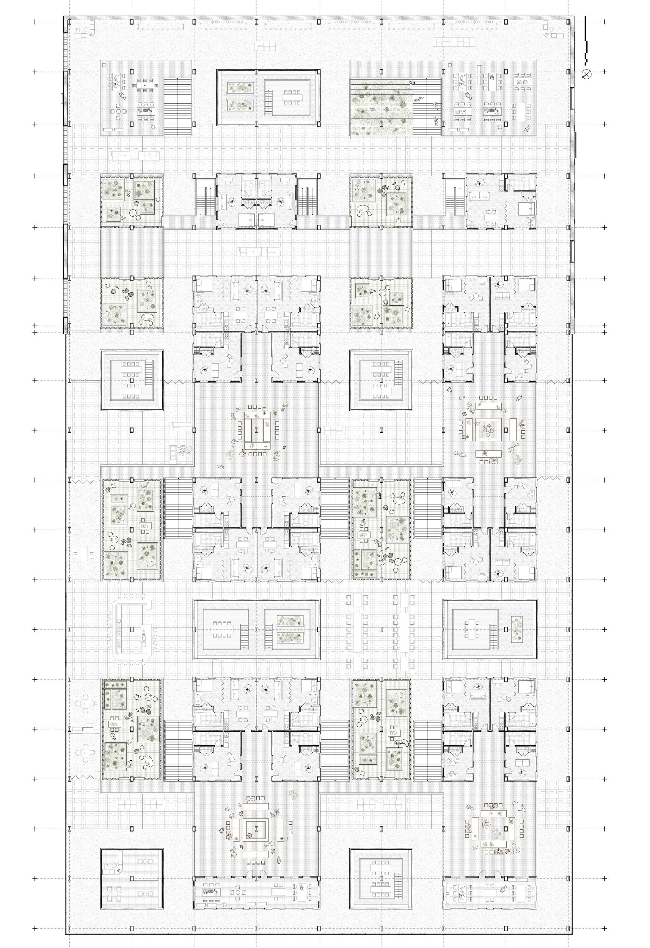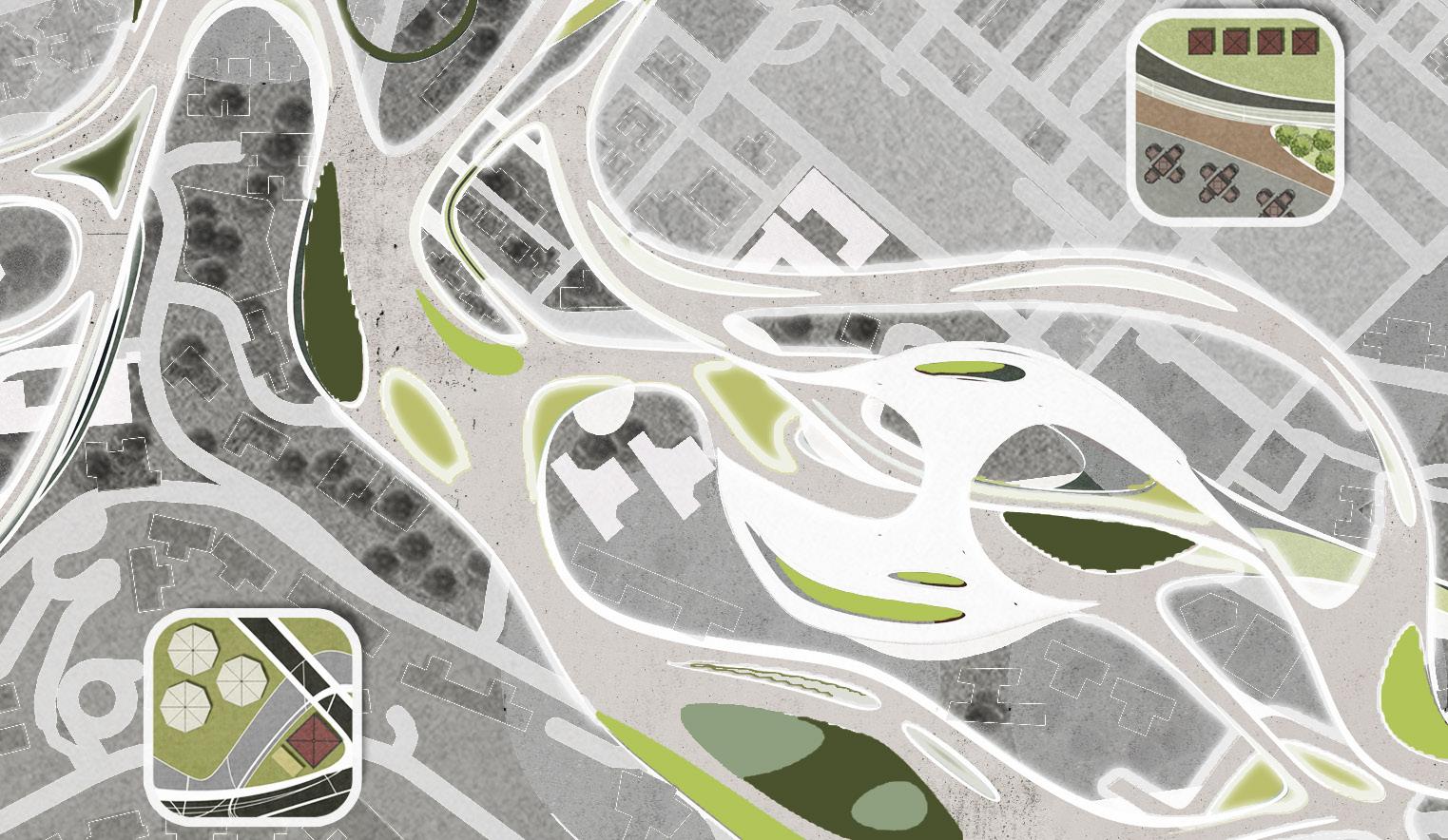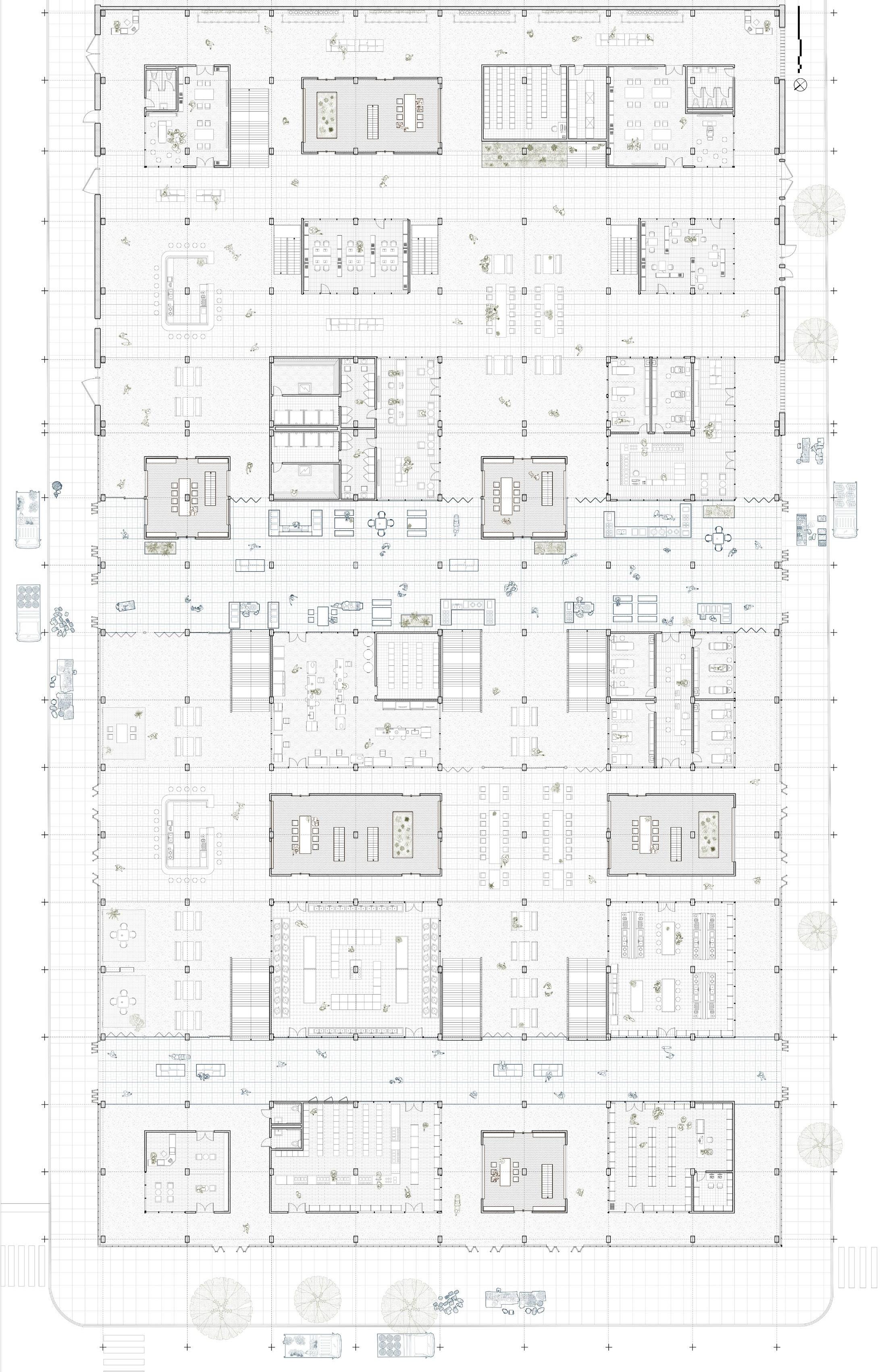 By bridging immigrant herbal traditions, communal care, and institutional healthcare, the project aims to cultivate an environment where culture and wellness co-evolve and where the building acts as an operational mediator rather than a prescriptive container. The interlace layout becomes the architectural driver: it generates a series of in-between spaces where programs overlap, transition, and coexist. These interweaving conditions allow activities to expand and contract over time, providing a structural flexibility that reflects how community practices unfold. The armature therefore operates not as a rigid hierarchy but as a spatial gradient that supports multiple forms of learning, production, and wellness simultaneously.