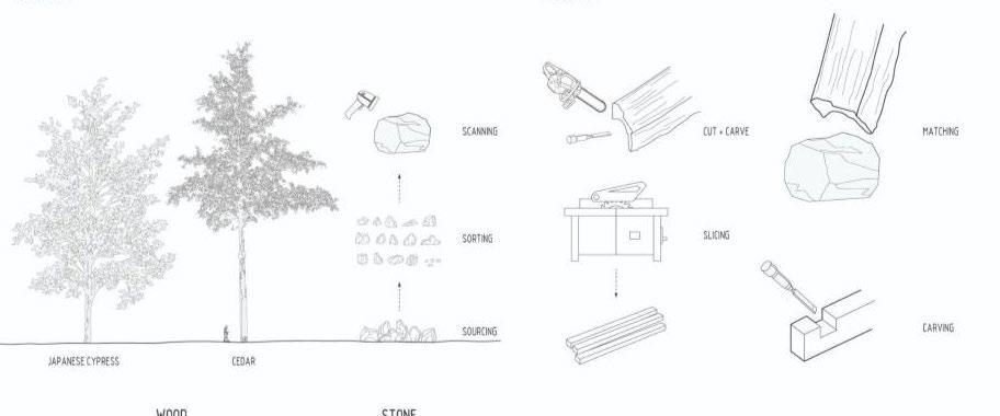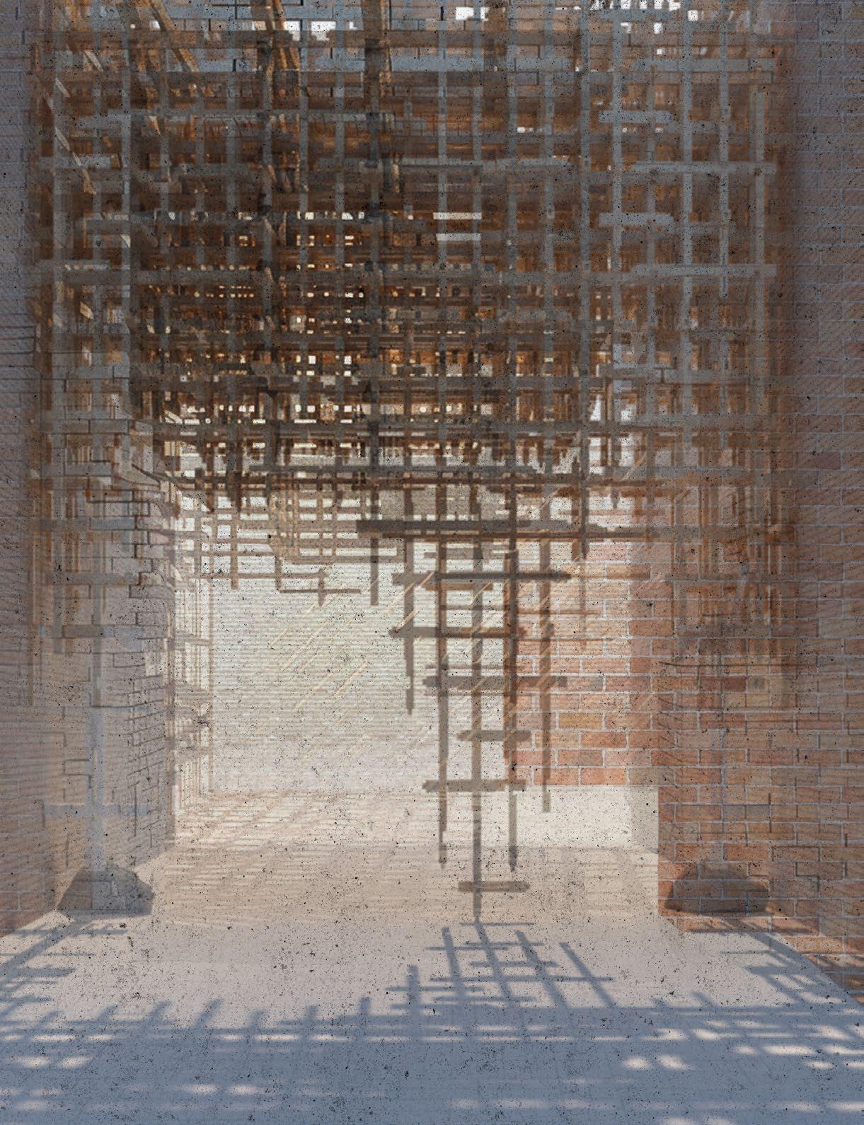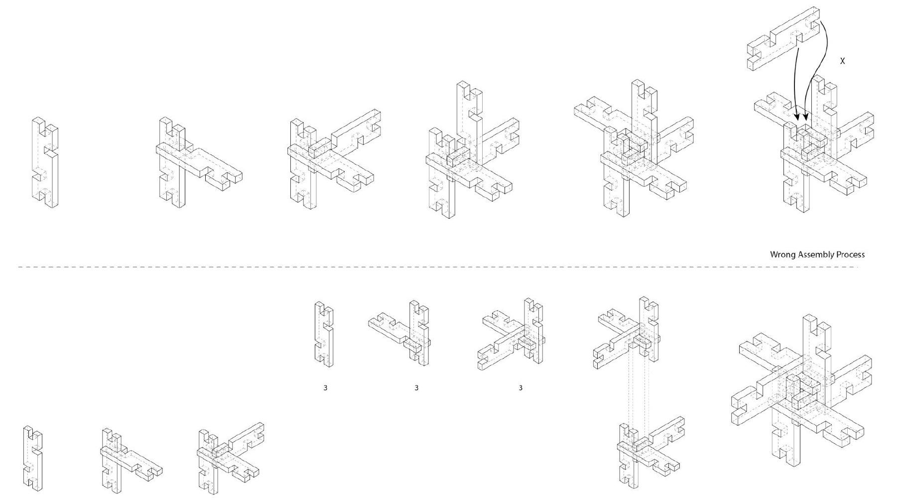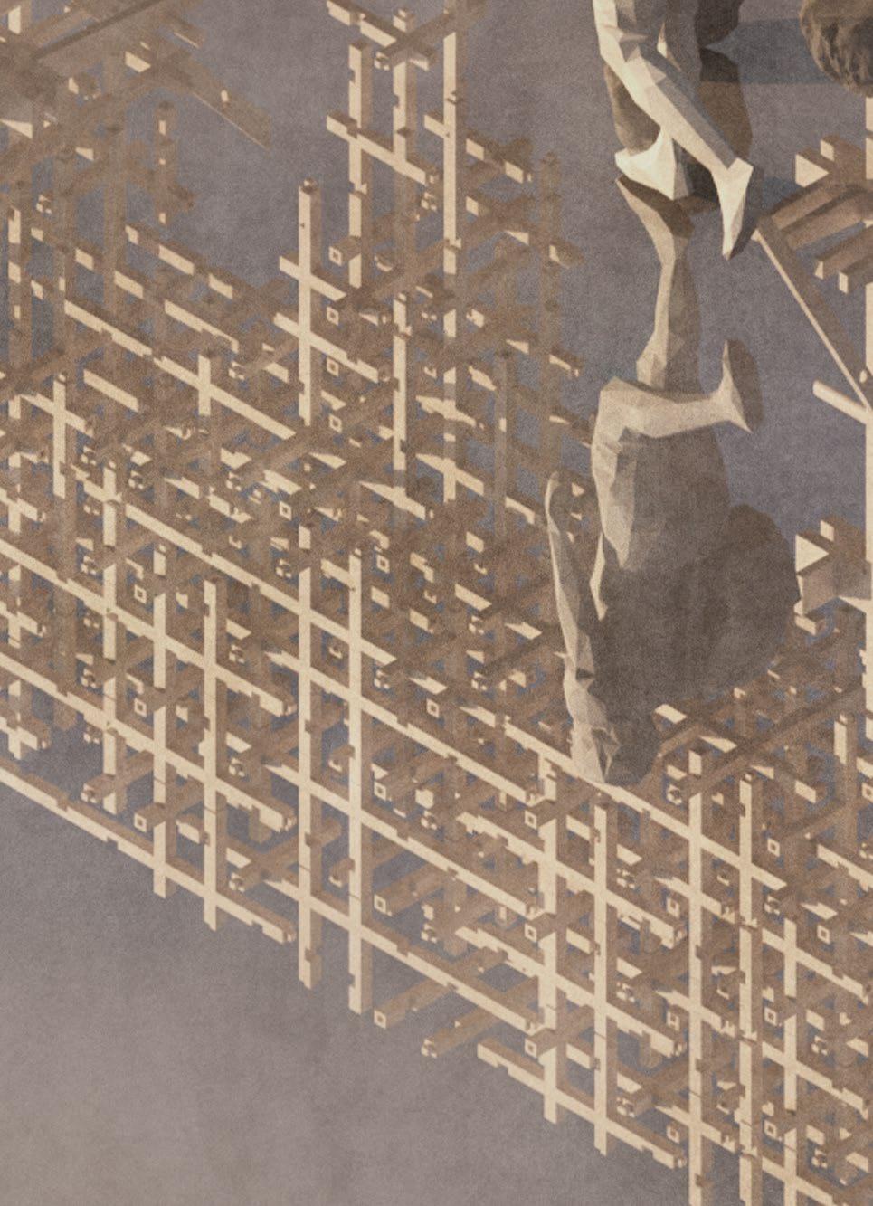 The proposition Attempts to integrate ancient construction practices with contemporary technology focus on minimizing material waste via reuse, while also considering the mechanization of lock production. The Grasshopper script may now control the creation of the blocks, as well as the dimensions and angles of the interlocking components. It might also regulate the area required for this construction, so facilitating room for human activities. Connections with alternative materials would be significant. The concept might provide a temporary space in the neglected urban region. The masonry and wood team might also investigate methods for controlling them under gravitational conditions. Additional materials may be included to realize this concept.