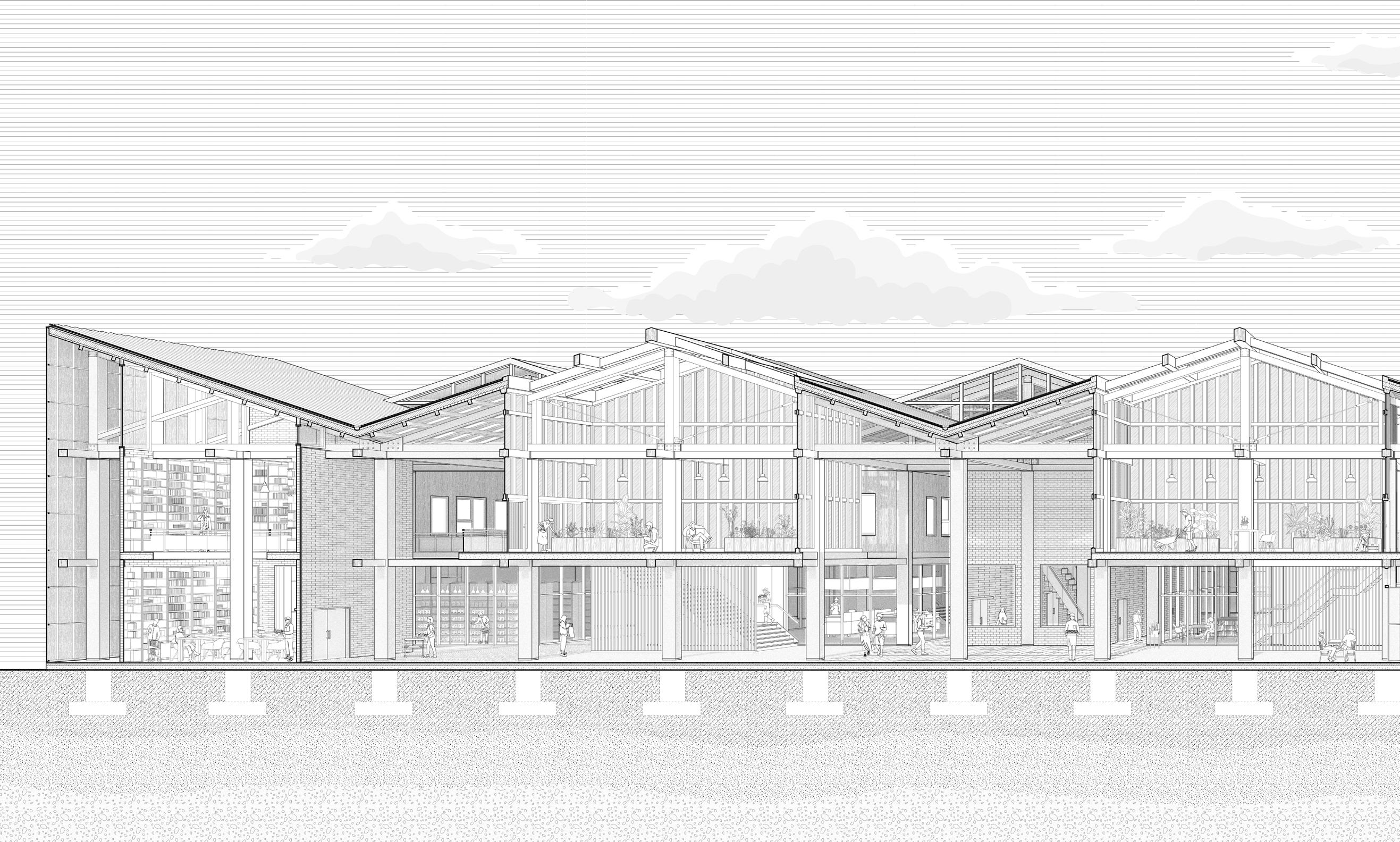 calibrated relationship between openness and enclosure, between facade rhythm and roof profile, defines a new atmospheric equilibrium.