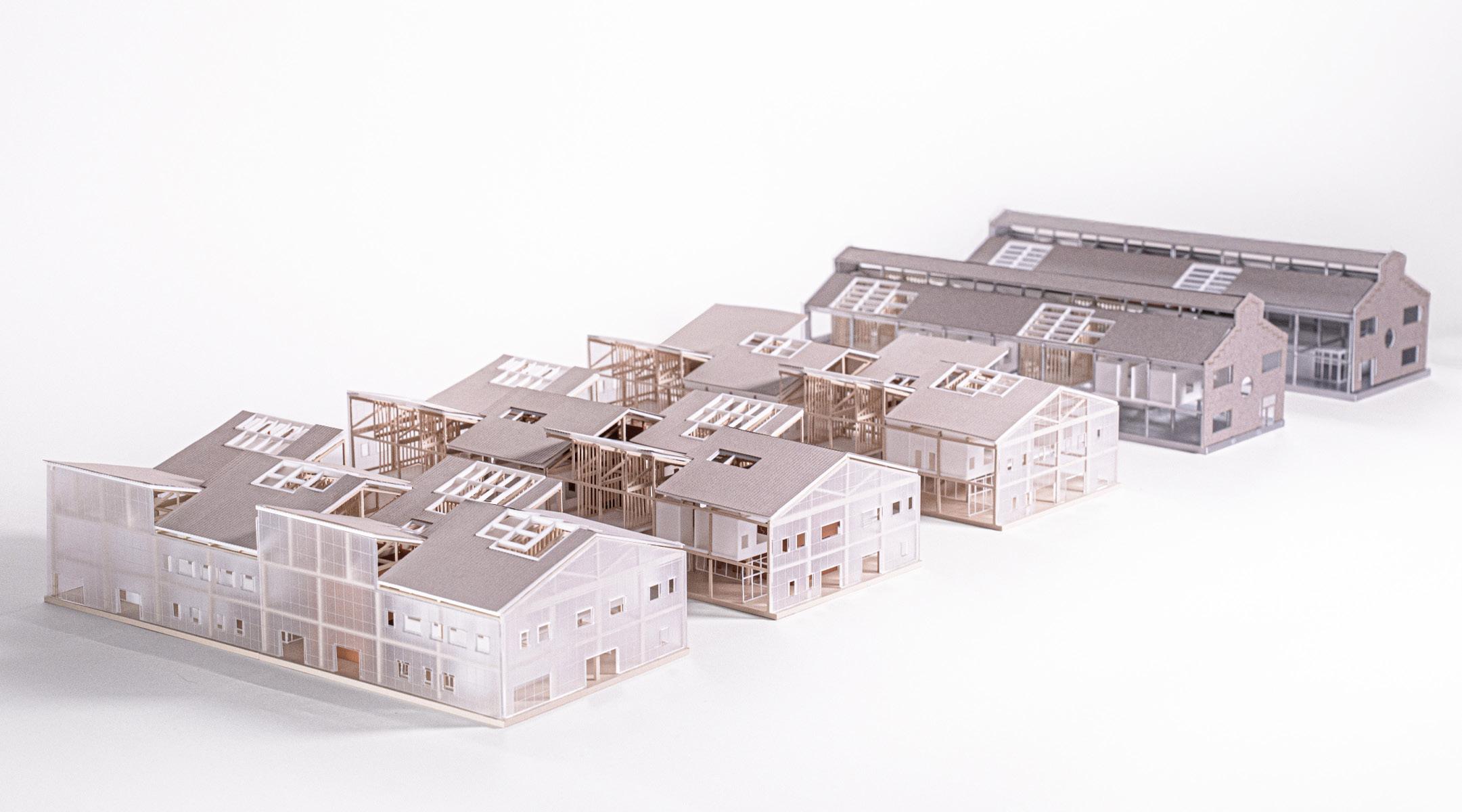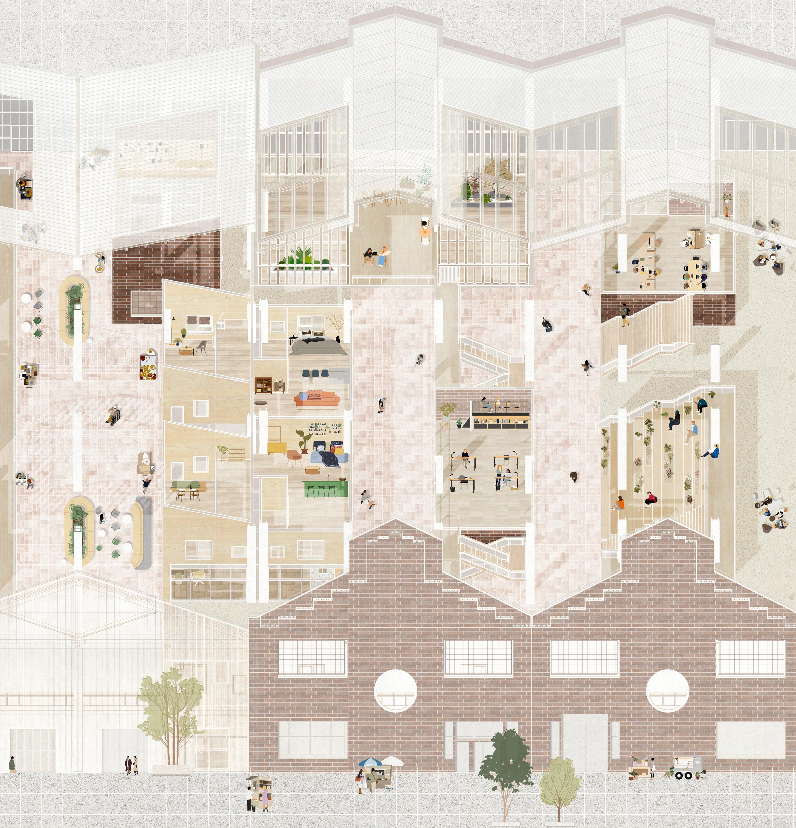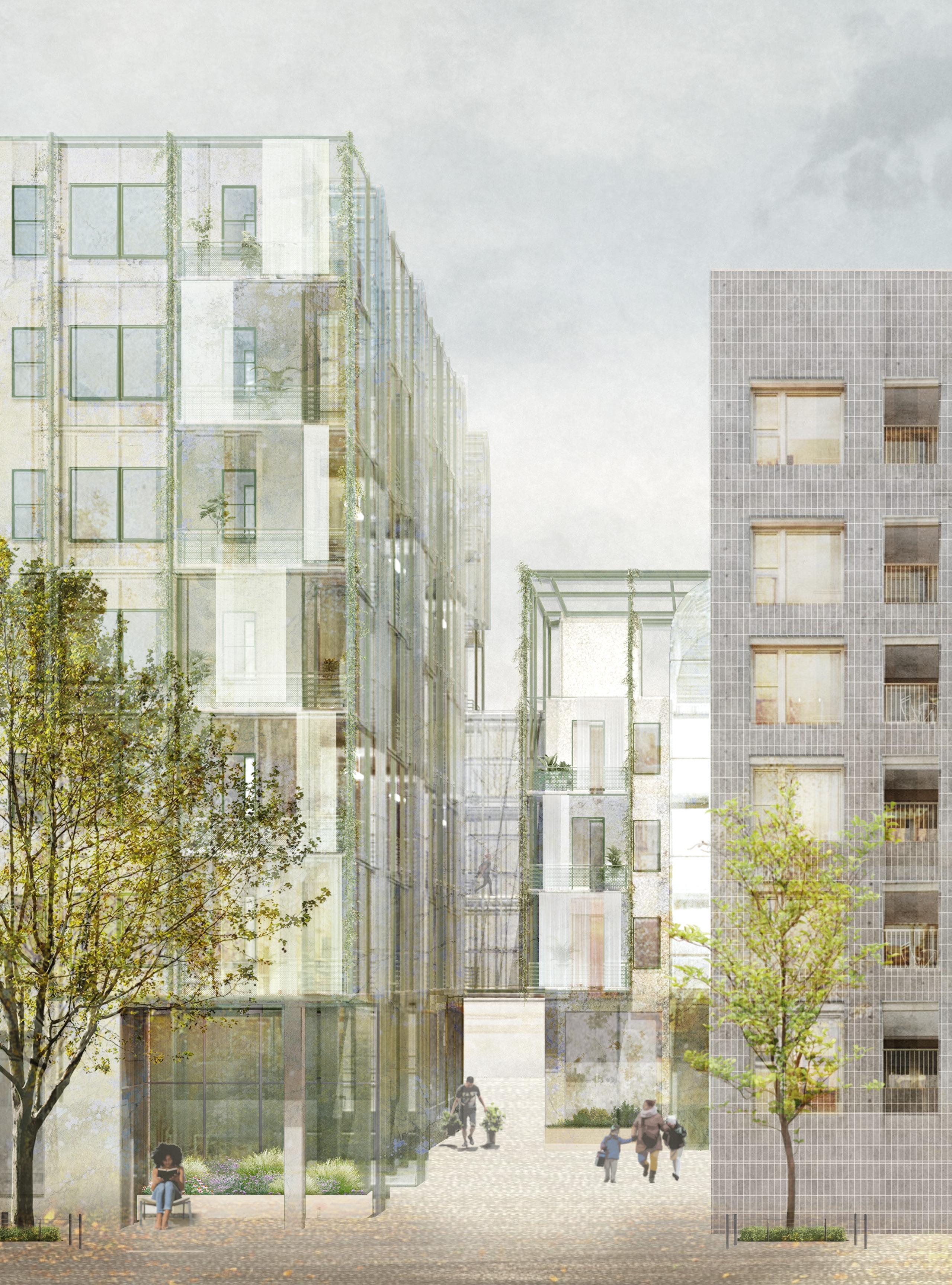 Outside Inside which adapts existing block factory buildings by preserving their facades, structuresm and reusing the materials