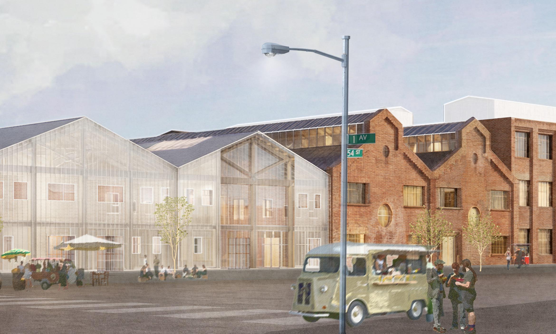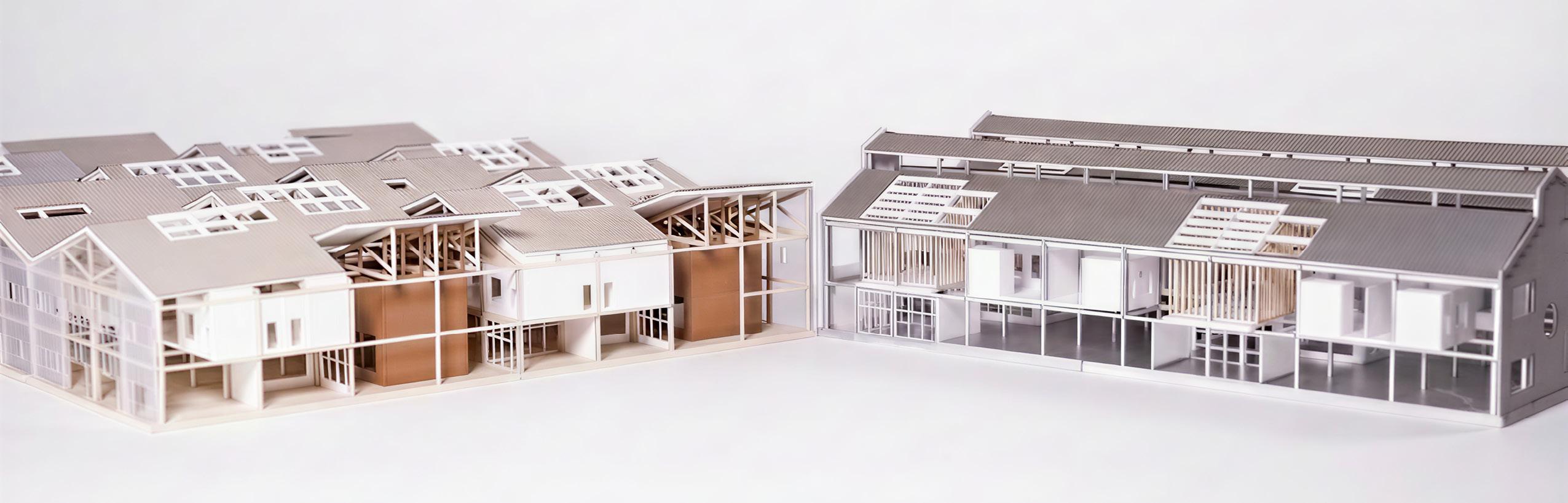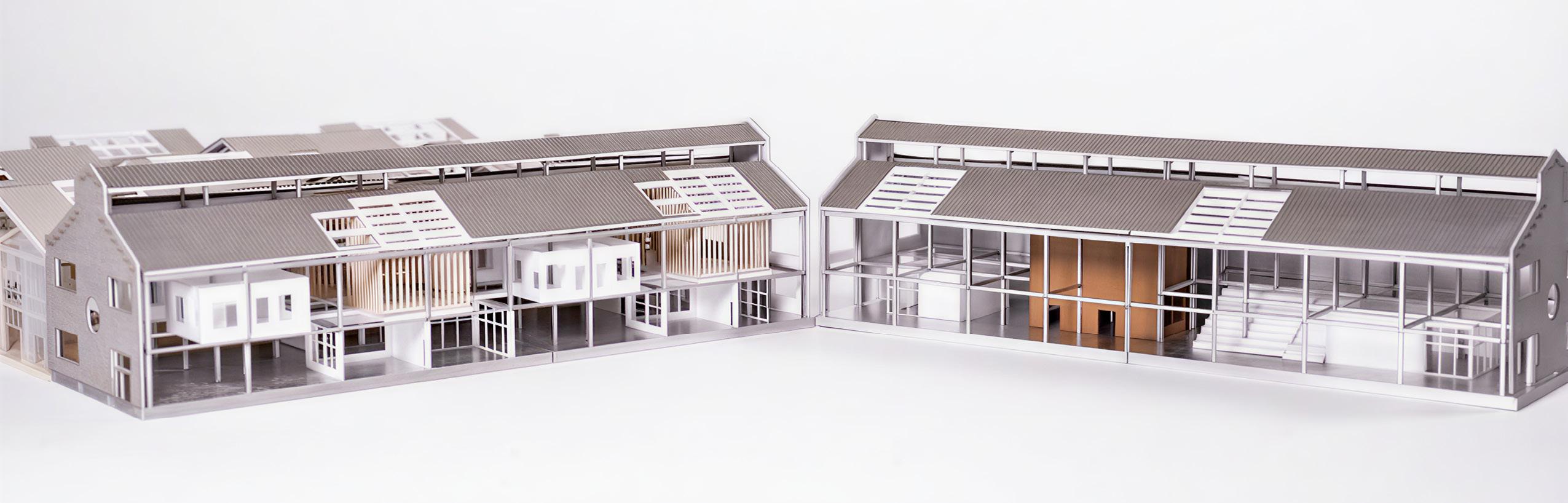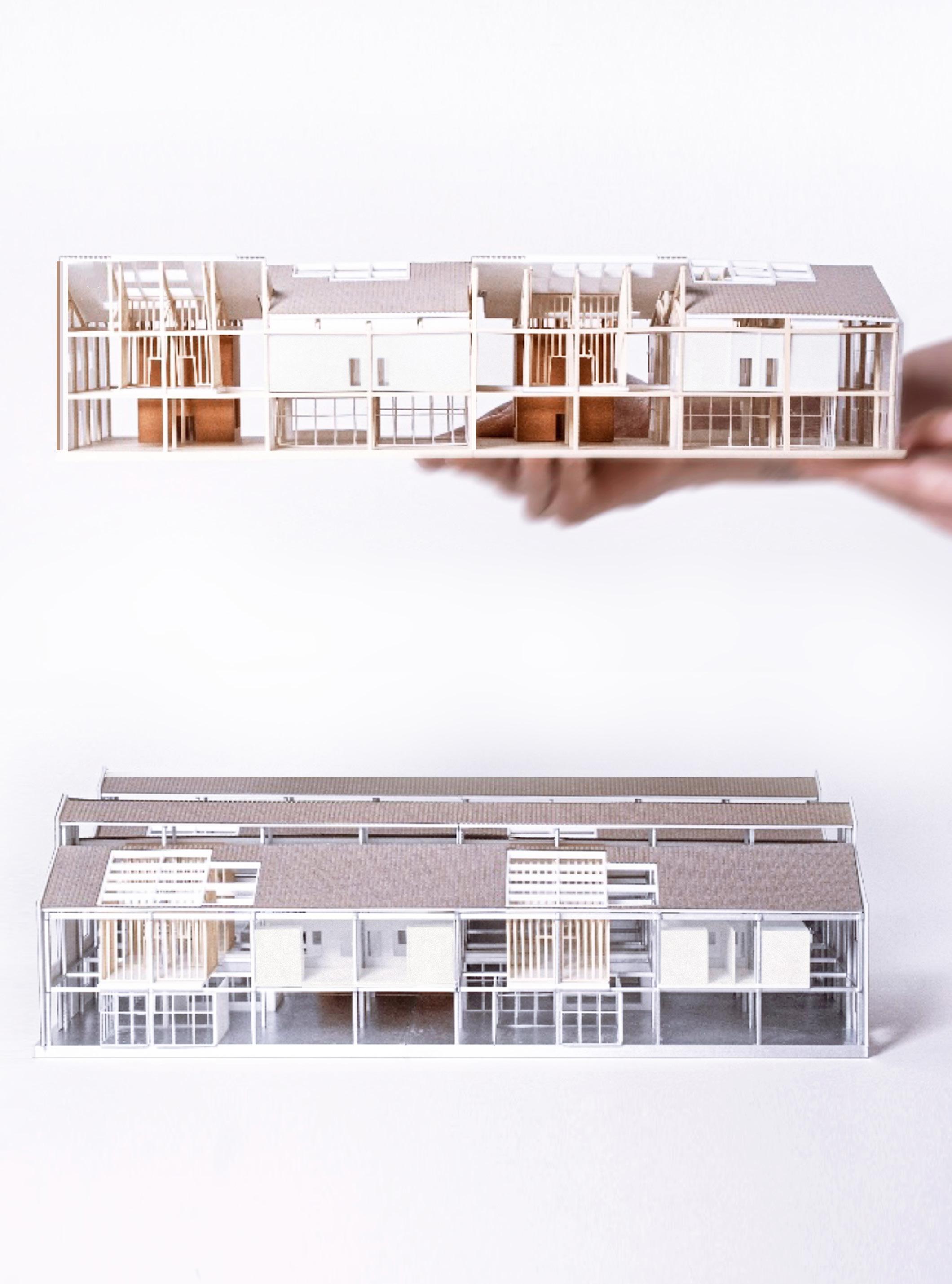 Outside Inside which adapts existing block factory buildings by preserving their facades, structuresm and reusing the materials