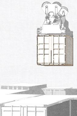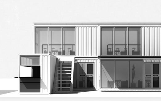 As the history of the site contains function as a loading dock, cafe will extent the geometry and material of the shipping containers.