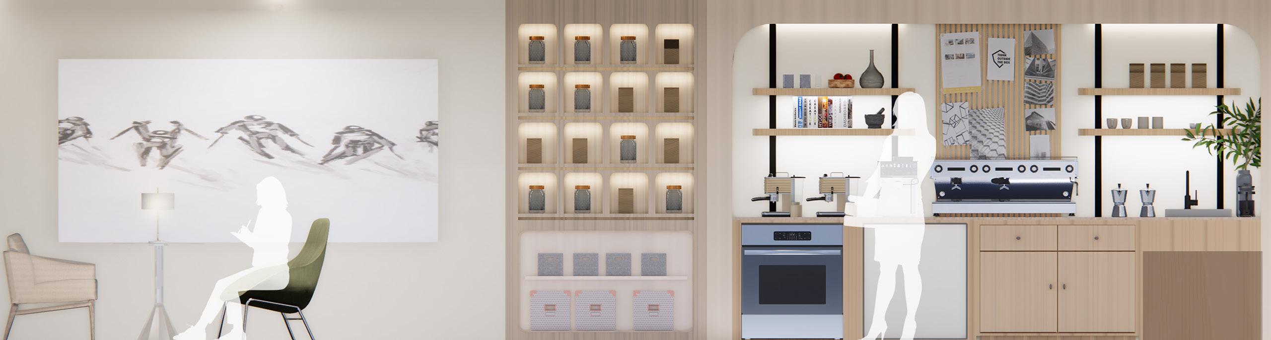 • Created three schematic designs using a combination of hand-drawing techniques and Rhino 3D digital modeling, resulting in the successful realization of the spatial design
