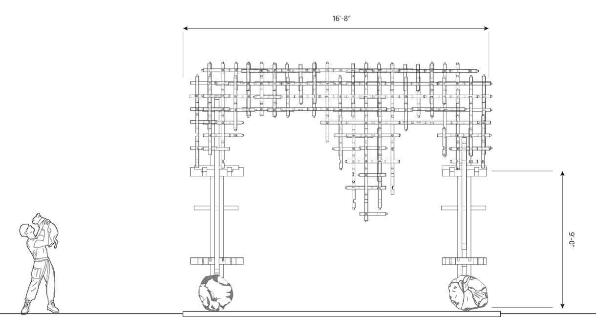 The Canopy is a project that explores the potential of wood and masonry joinery. By designing a distinctive wall assembly, the wall aspires to evolve into a canopy that responds to local conditions while reexamining the relationship between manmade structures and natural components.