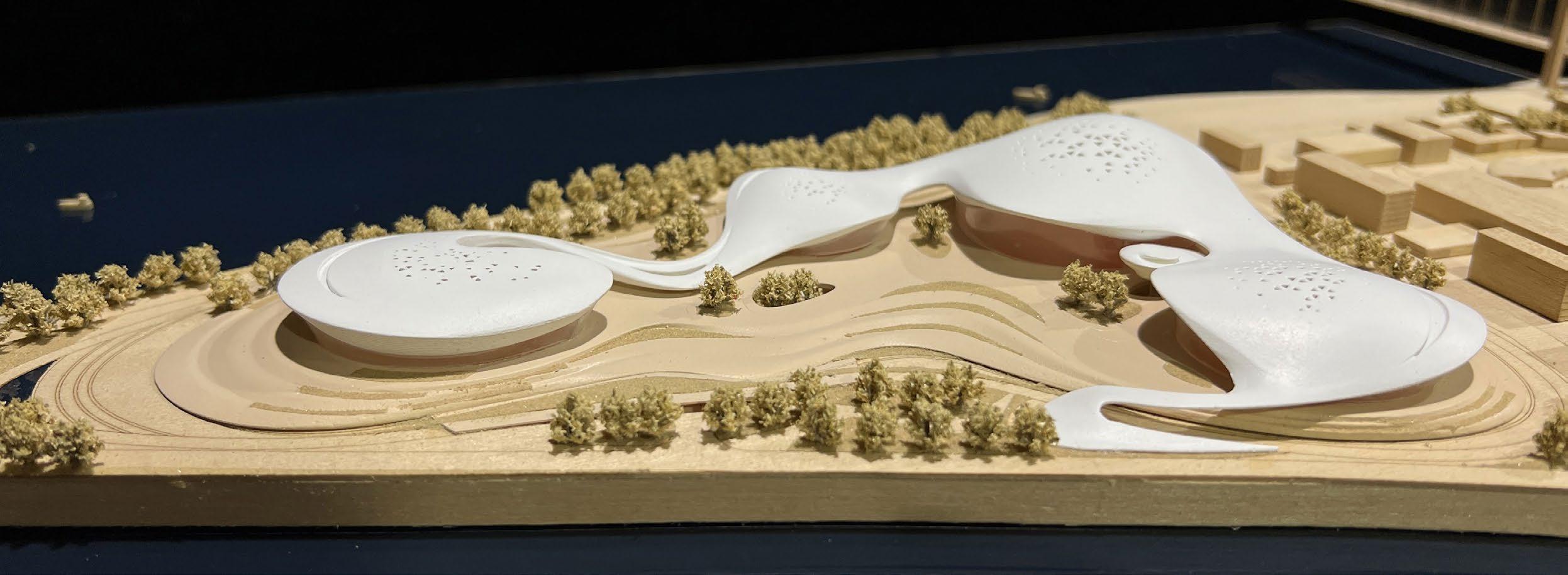 The netting system, a waving roof system across the site, using the same language as the Le Havre structure.