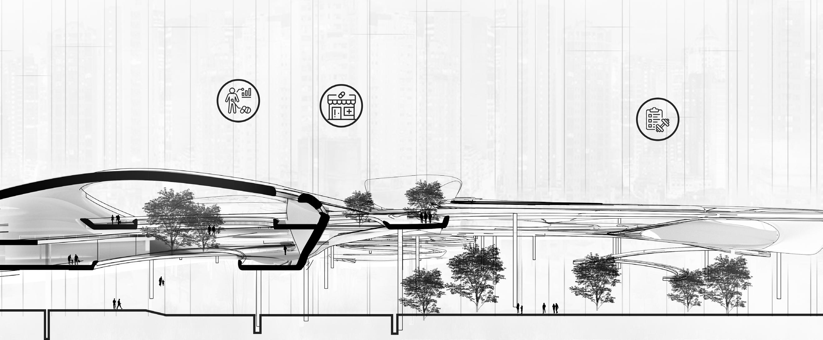 The proposal was predicated on the notion that architecture may serve as an ongoing public venue that facilitates citizen engagement within the urban environment. The preliminary study of the project indicated that the proliferation of high-rises in Hong Kong is encroaching onto public spaces and diminishing the city’s walkability, therefore adversely affecting the physical and mental well-being of its residents.