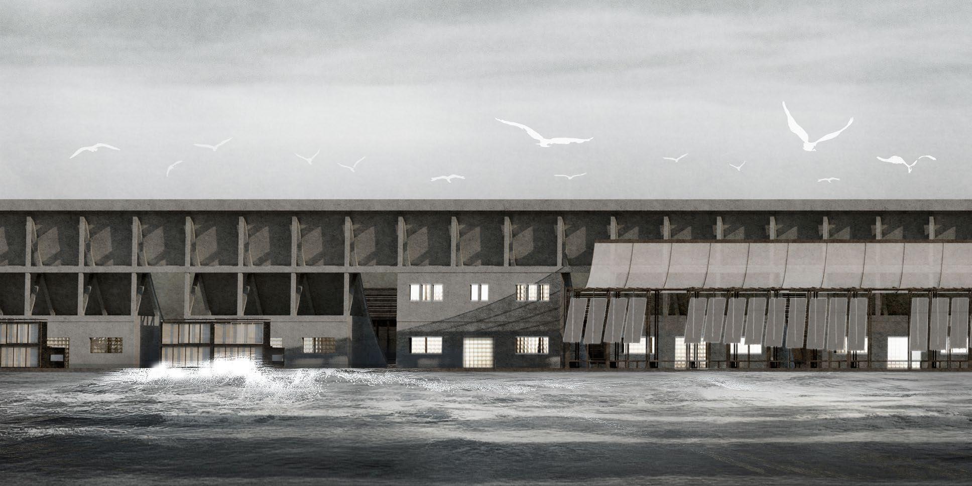 The proposal envisions an extension of the Brise-Vent Havre, primarily focused on showcasing the harbor’s history and artifacts. Three spaces are placed based on the Datum, the Brise-Vent Havre. A visitor center contains public facilities will be located on the southern side of the structure, while a movable installation and café will be situated on the northern apron. Each space will feature a specially designed stylobate that reflects the existing structure, enhancing the narrative of the harbor through both architectural and urban design elements.