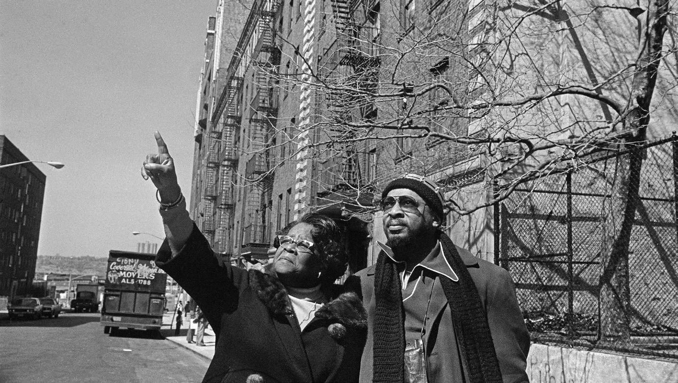 Steve Carter with his mother Carmen Annetta Samuels, in San Juan Hill, Manhattan, 1976.