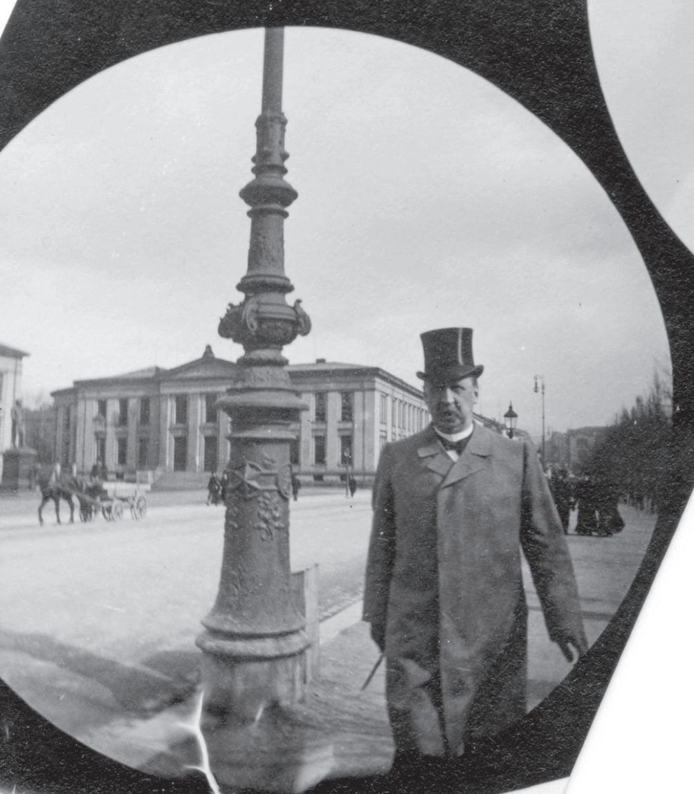 Fredrik Carl Mülertz Størmer (1874-1957) fue un matemático noruego, conocido por sus enormes contribuciones al cálculo de π. Estudió en la Universidad Real Federico de Christiania durante la década de 1890, donde tomó una serie de fotografías notables. Escondiendo una gran cámara bajo la chaqueta de un traje, Størmer capturó discretamente cientos de imágenes por la ciudad. Documentó la vida cotidiana al aire libre de la ciudad noruega de una forma completamente novedosa, quizás una de las primeras “cámaras ocultas”.