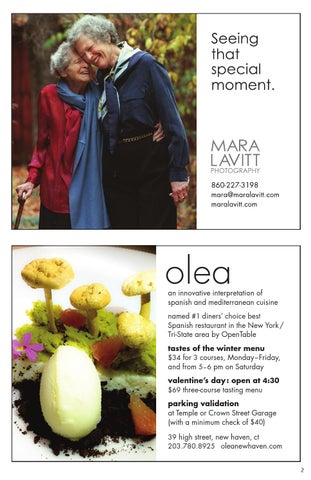 valentine’s day : open at 4:30 $69 three-course tasting menu parking validation at Temple or Crown Street Garage (with a minimum check of $40) 39 high street, new haven, ct 203.780.8925 oleanewhaven.com 2