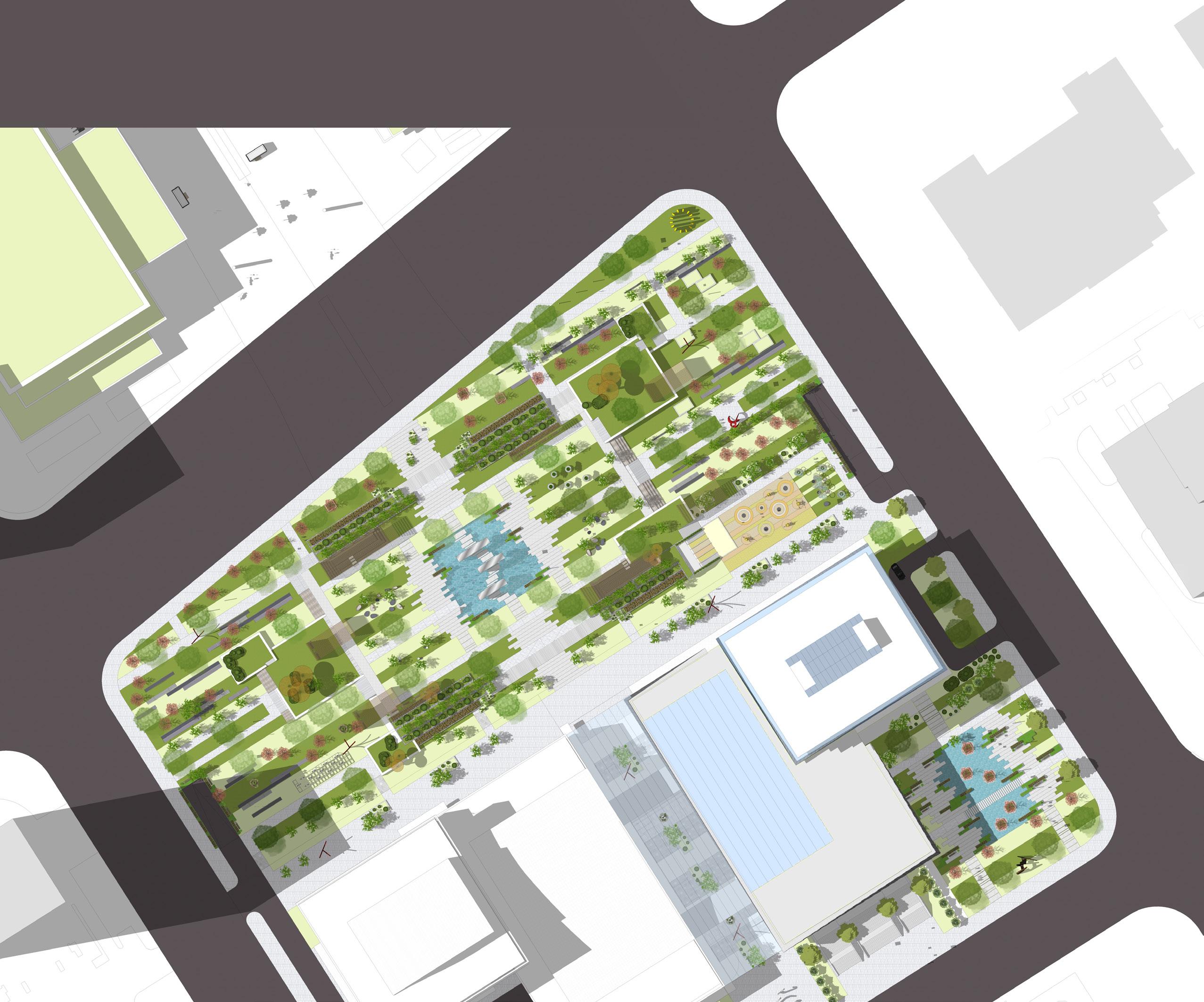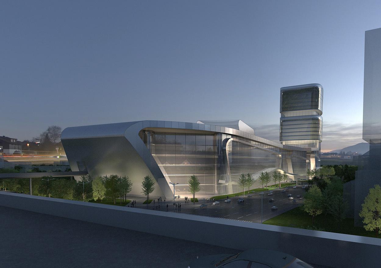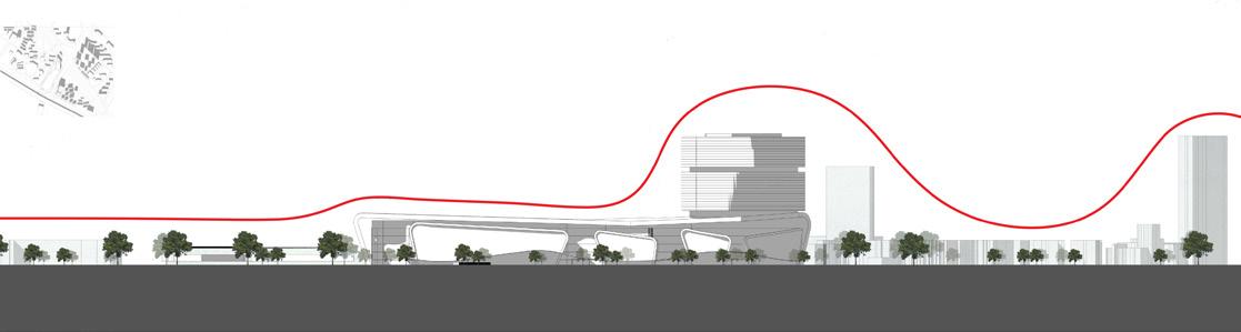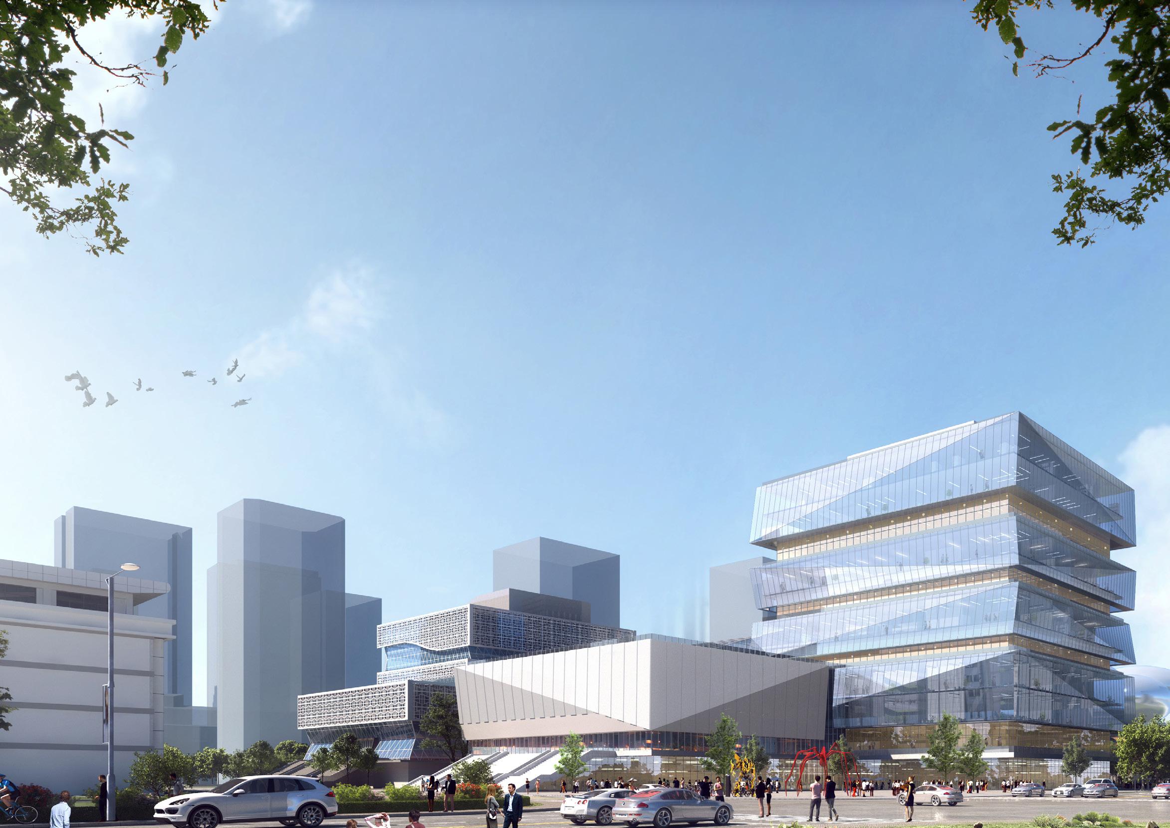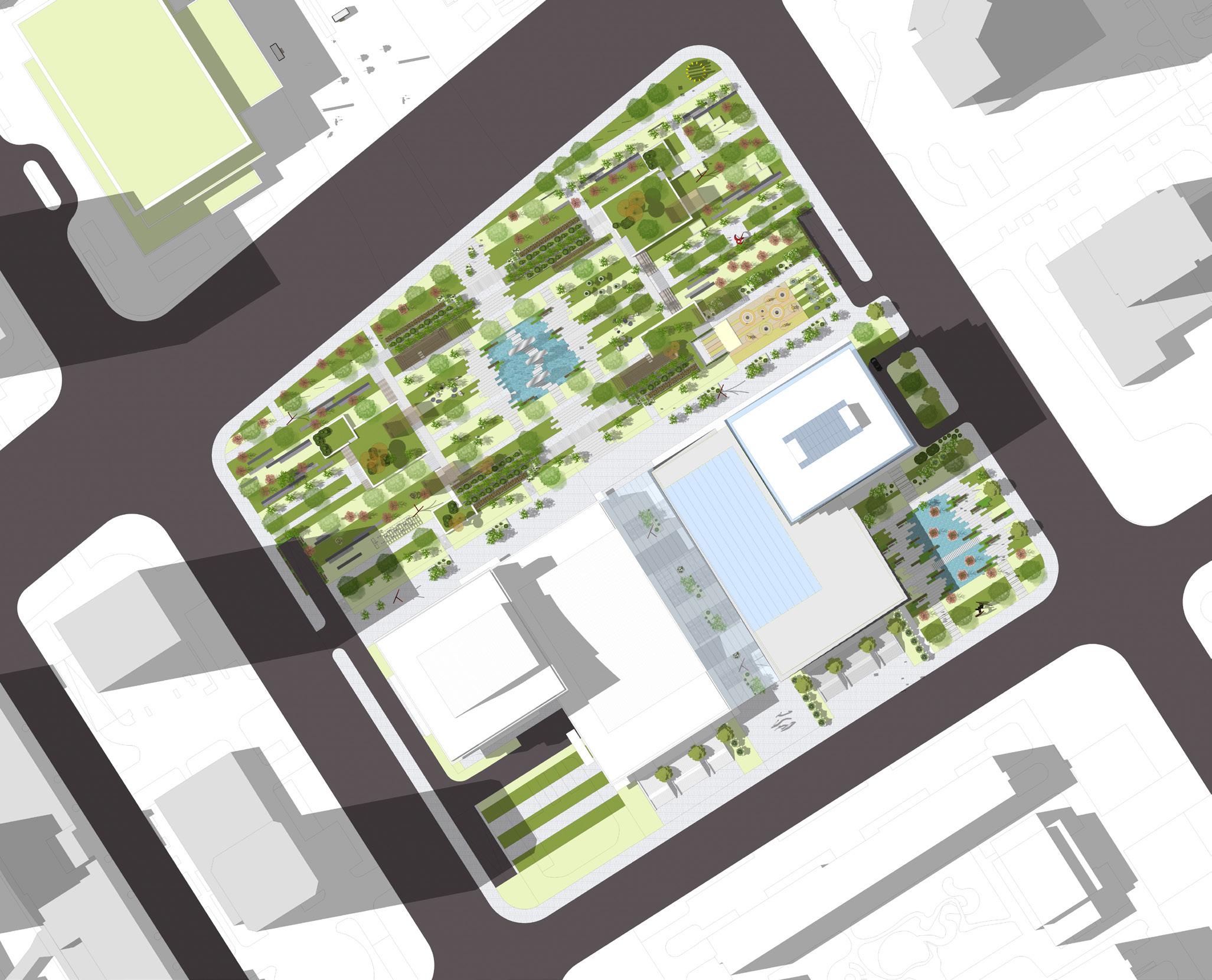 The proposed site is located in the core area of Zhongguancun Science City, Haidian District, Beijing. The Dongsheng Complex will serve as a 'Metro Micro Center' that integrates a high-tech office, exhibition and underground commercial with connections with a planned subway Metro station. A total of three sunken plazas will serve as a connection between the station and underground commercial facilities. The sunken plazas will also provide a means of egress in addition to regulatin the underground circulation.