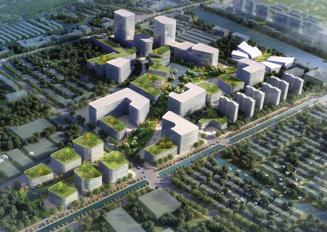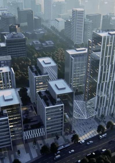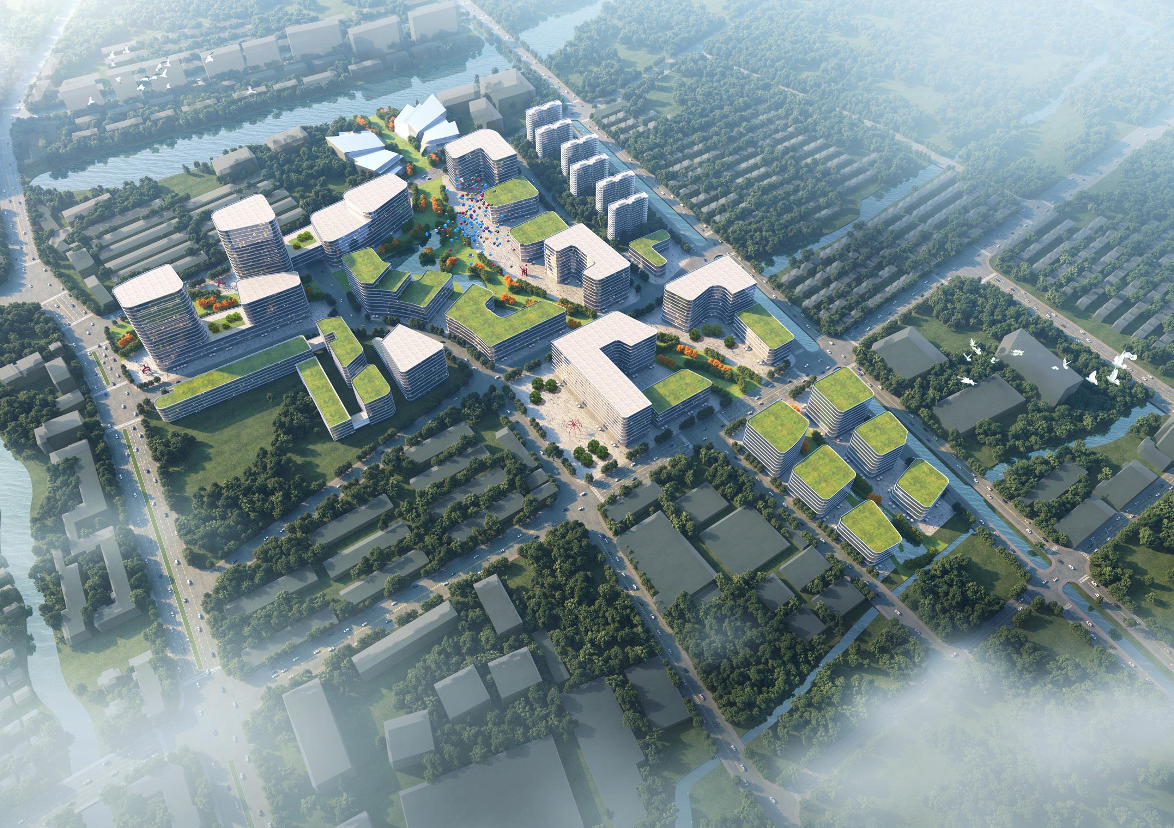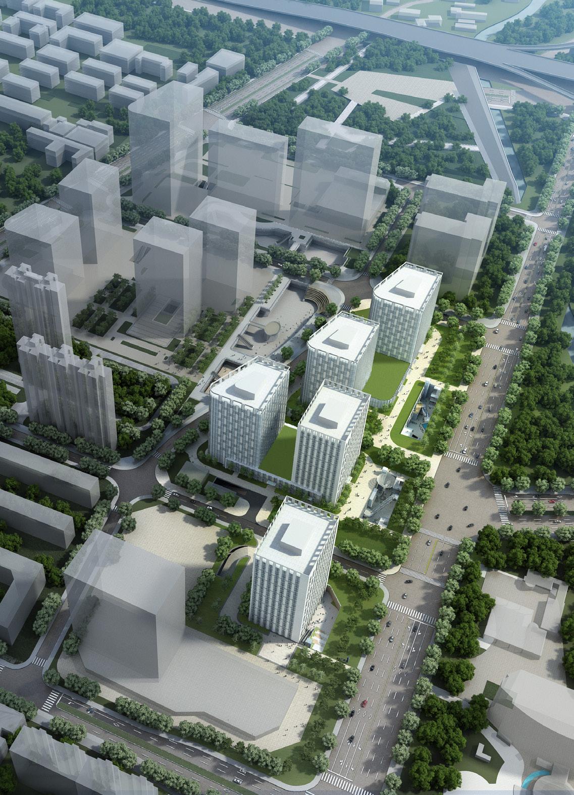 The total construction area is 878,359 square meters. The core area is the central park and the artificial lake along with the green belt are used to connect the various areas. Hotel, R&D, residential, office and commercial areas are arranged in the park.