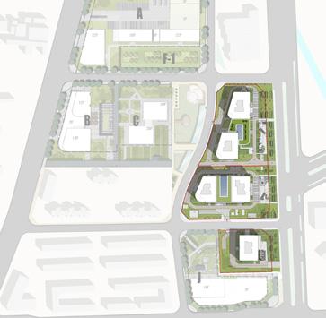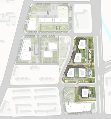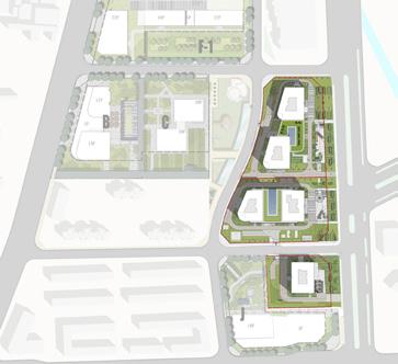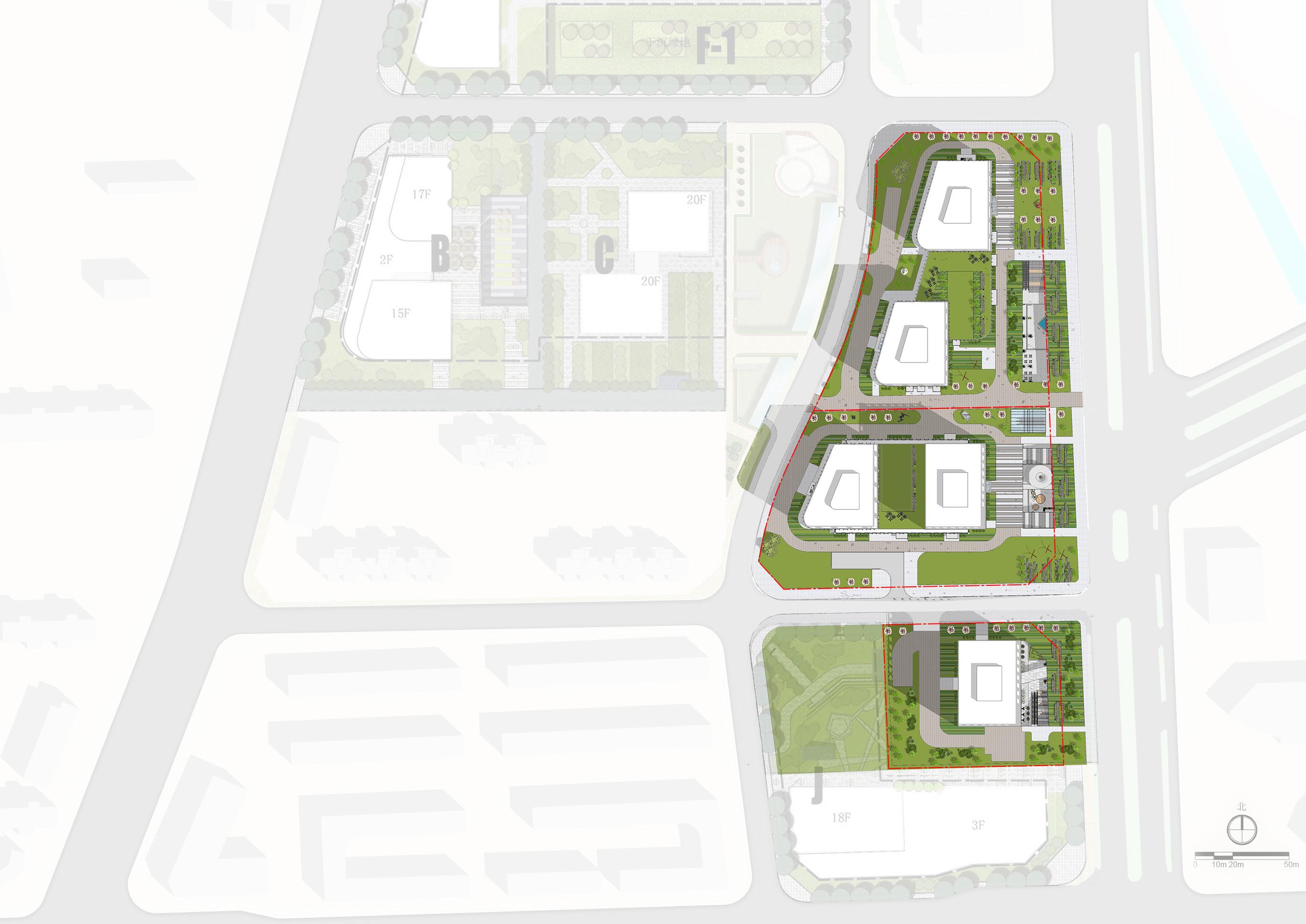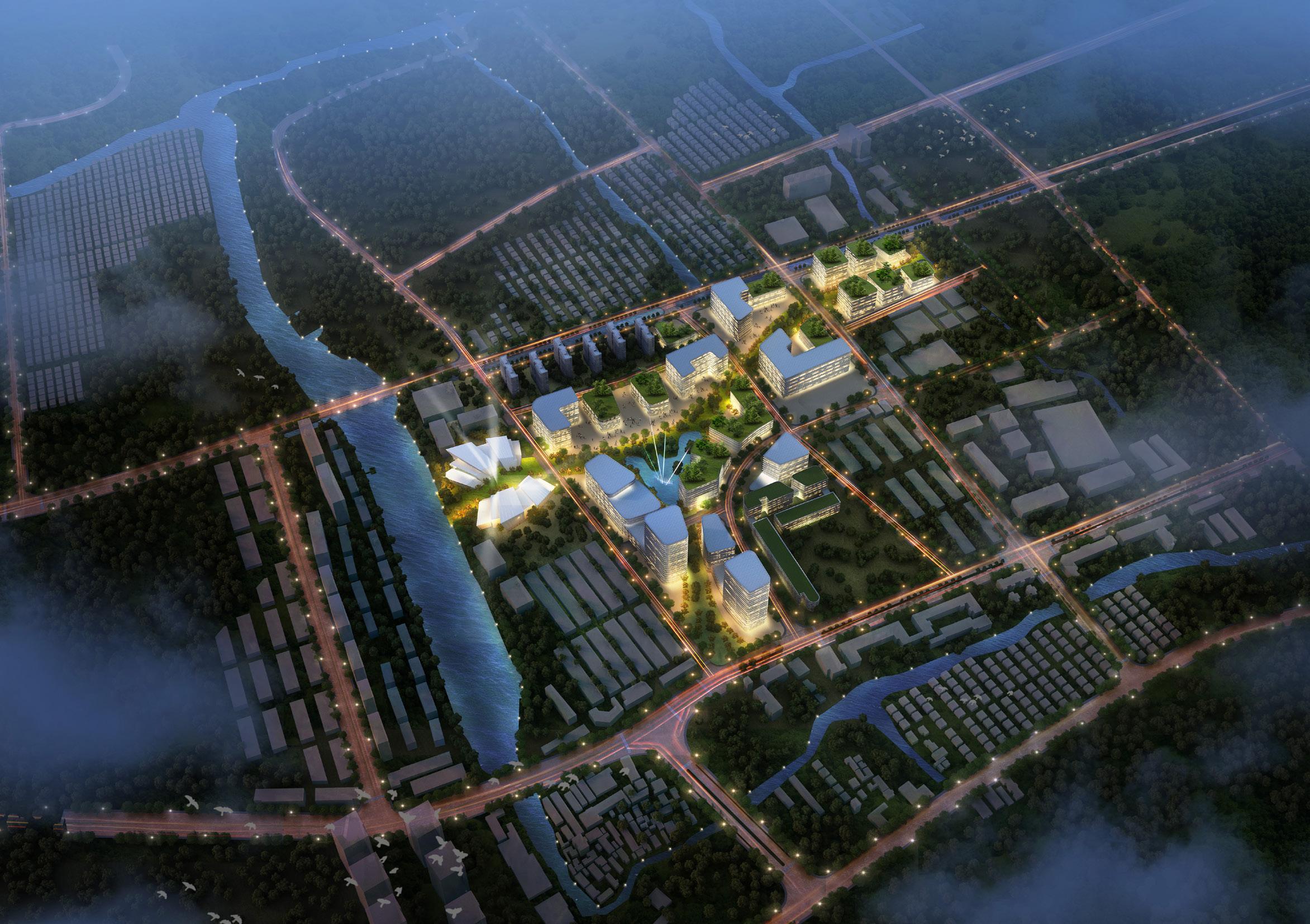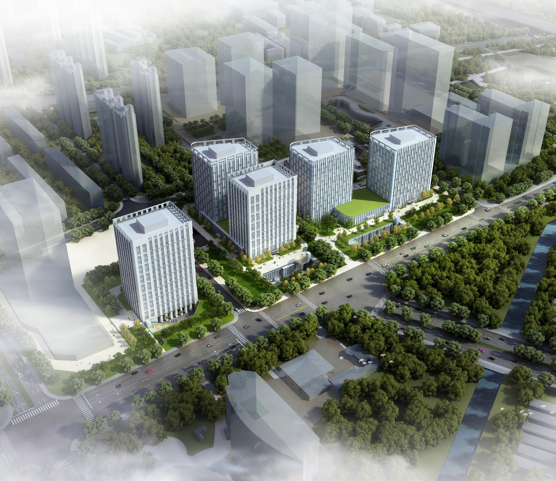 The total construction area is 878,359 square meters. The core area is the central park and the artificial lake along with the green belt are used to connect the various areas. Hotel, R&D, residential, office and commercial areas are arranged in the park.