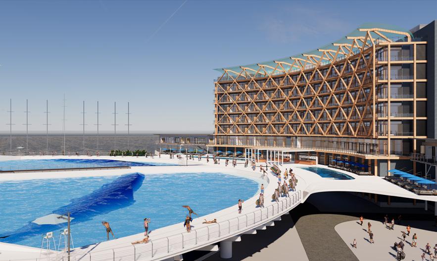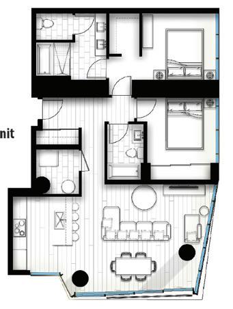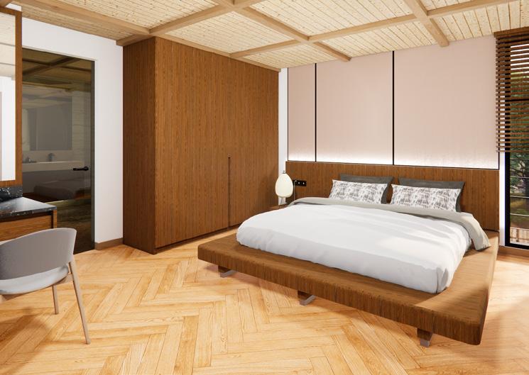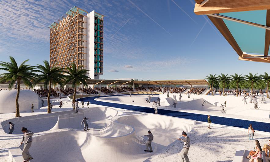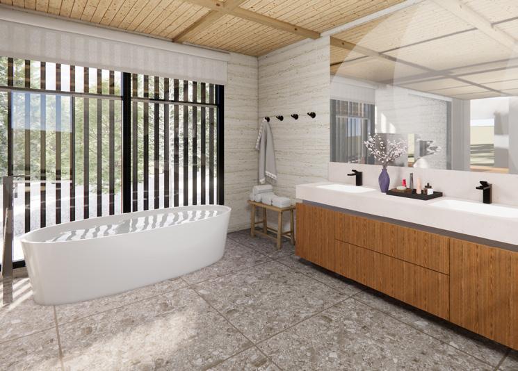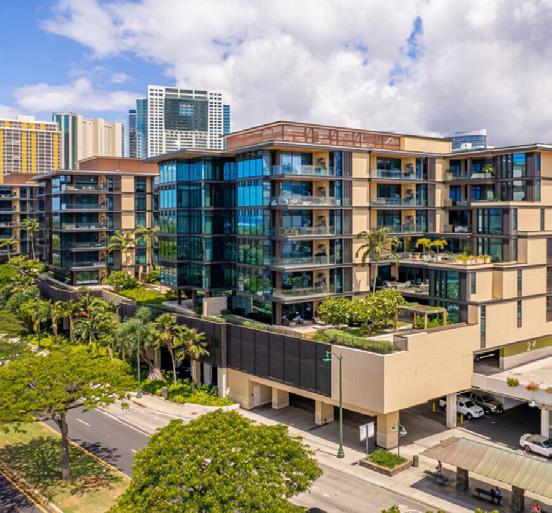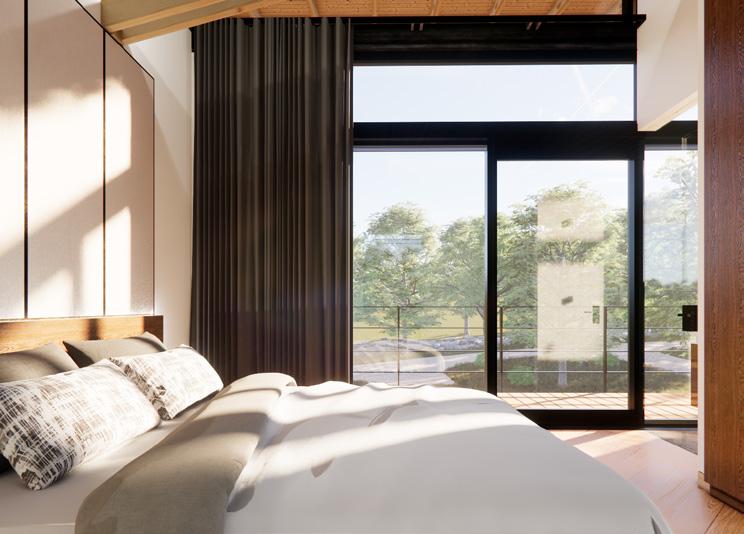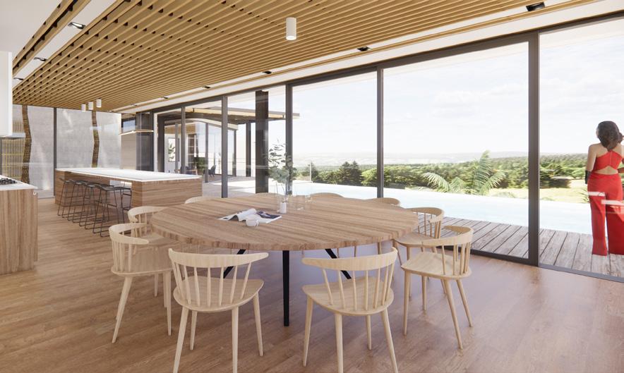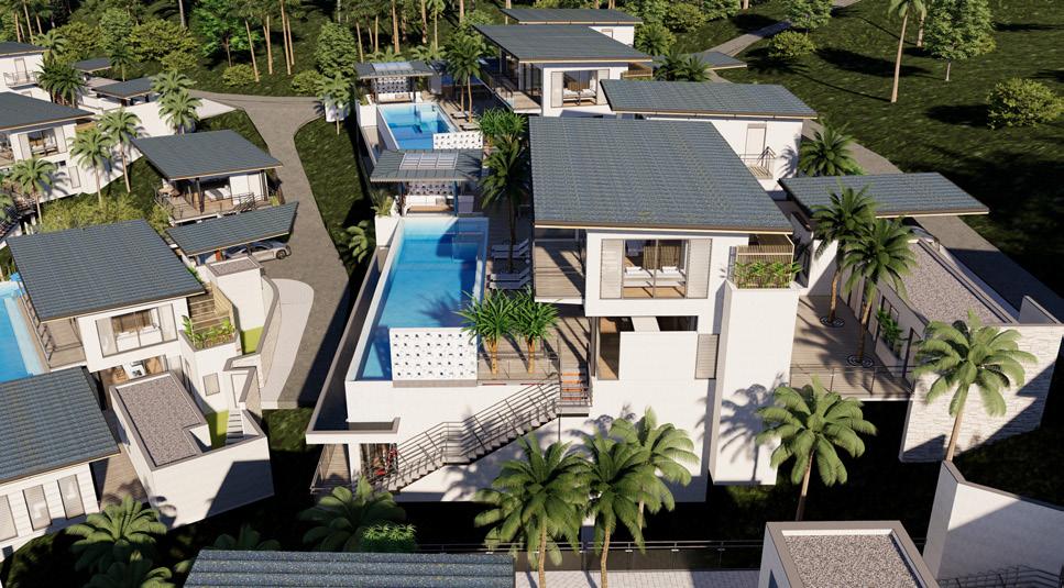 The buildings are designed to be climate-appropriate, with large overhanging and highly insulated roofs providing shade to the buildings and deck areas, a low-carbon-footprint steel-frame superstructure, solar heating to the pool, fanassisted climate controls, and LED lighting throughout the development.