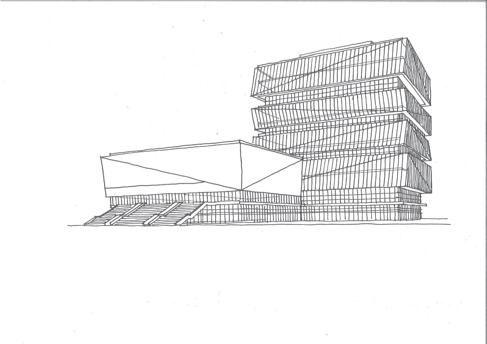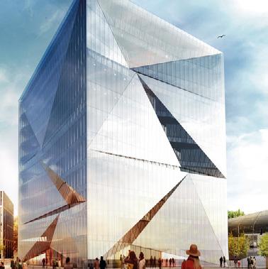 Proposed office tower forms a TRIANGLE with neighboring highrise buildings