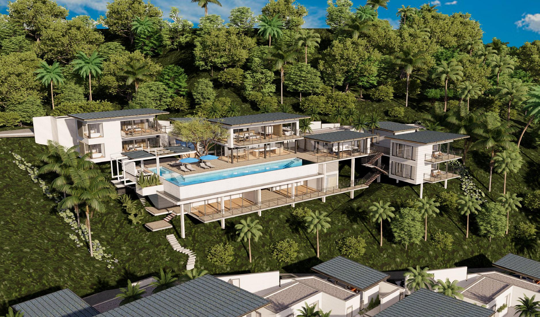 Masterplanning, Architectural, and Interior Design for a groundbreaking approach to modular design for high-end villas close to the best destinations in Indonesia. The first house, Villa-A1 located on the hills above Sengiggi Beach in Lombok, is 8,500 ft² GFA and a CFA of over 15,000 ft². The residence consists of 5 en-suite bedrooms in three buildings, with the master bedroom sporting an outdoor onsen and shower facility.