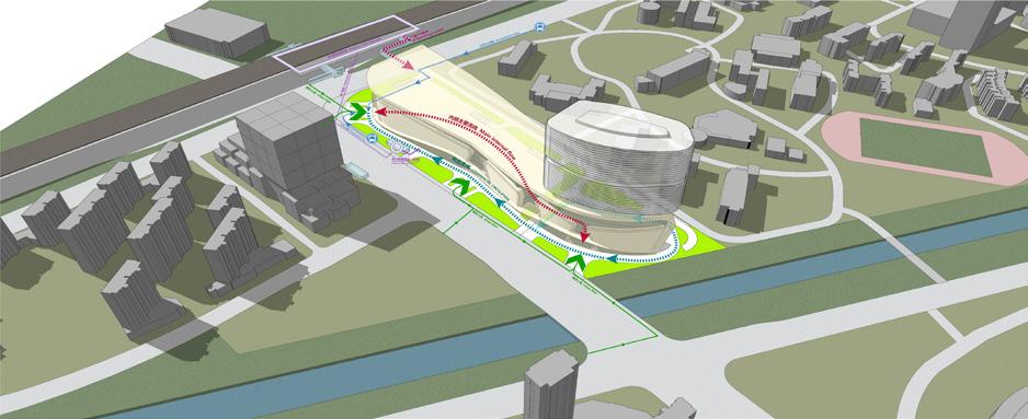 方案推演 SCHEME DESIGN EVOLUTION 3 商业流线 COMMERCIAL CIRCULATION 本项目商业人流主要来自于地铁,行人沿耕文路步行,来到本项目。同时也通过办公楼与地铁之间沟通的通勤路线到达本项目。 因此本项目在二层设置于地铁站连通的人行廊。并着重打开耕文路一侧的商业界面