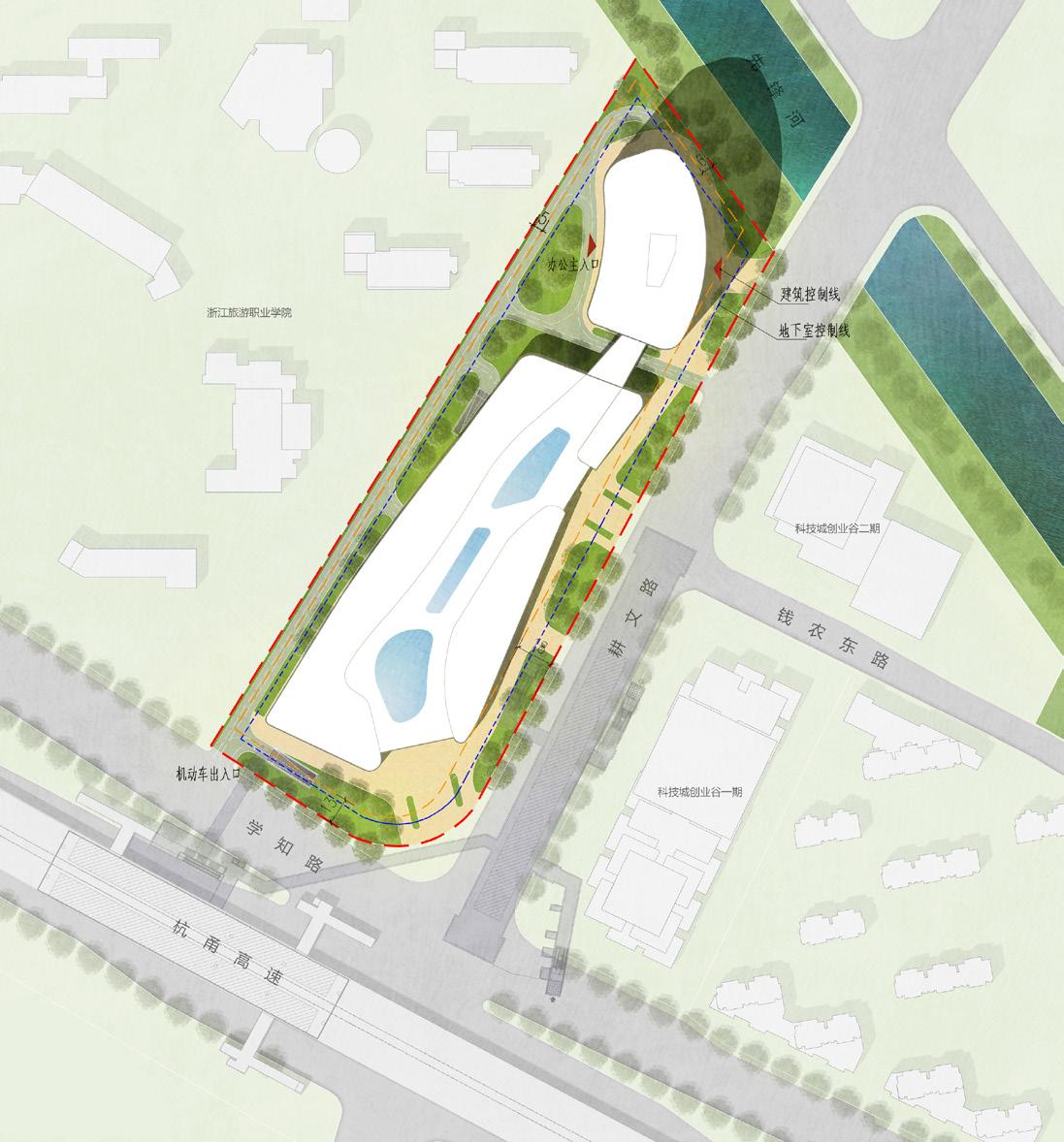 The planned site is located in the cultural and educational area in the south of the Qianjiang Cultural Unit in Xiaoshan District, Hangzhou. Xiaoshan will become a core part of the central urban area of Hangzhou in the near future. It is the international gateway and regional radiation hub of Hangzhou. It is characterized by the deep integration of intelligent manufacturing and innovation, highly developed international services, exquisite landscapes, and diverse cultural atmosphere. The area has also demonstrated quality development of urban an rural mix.
