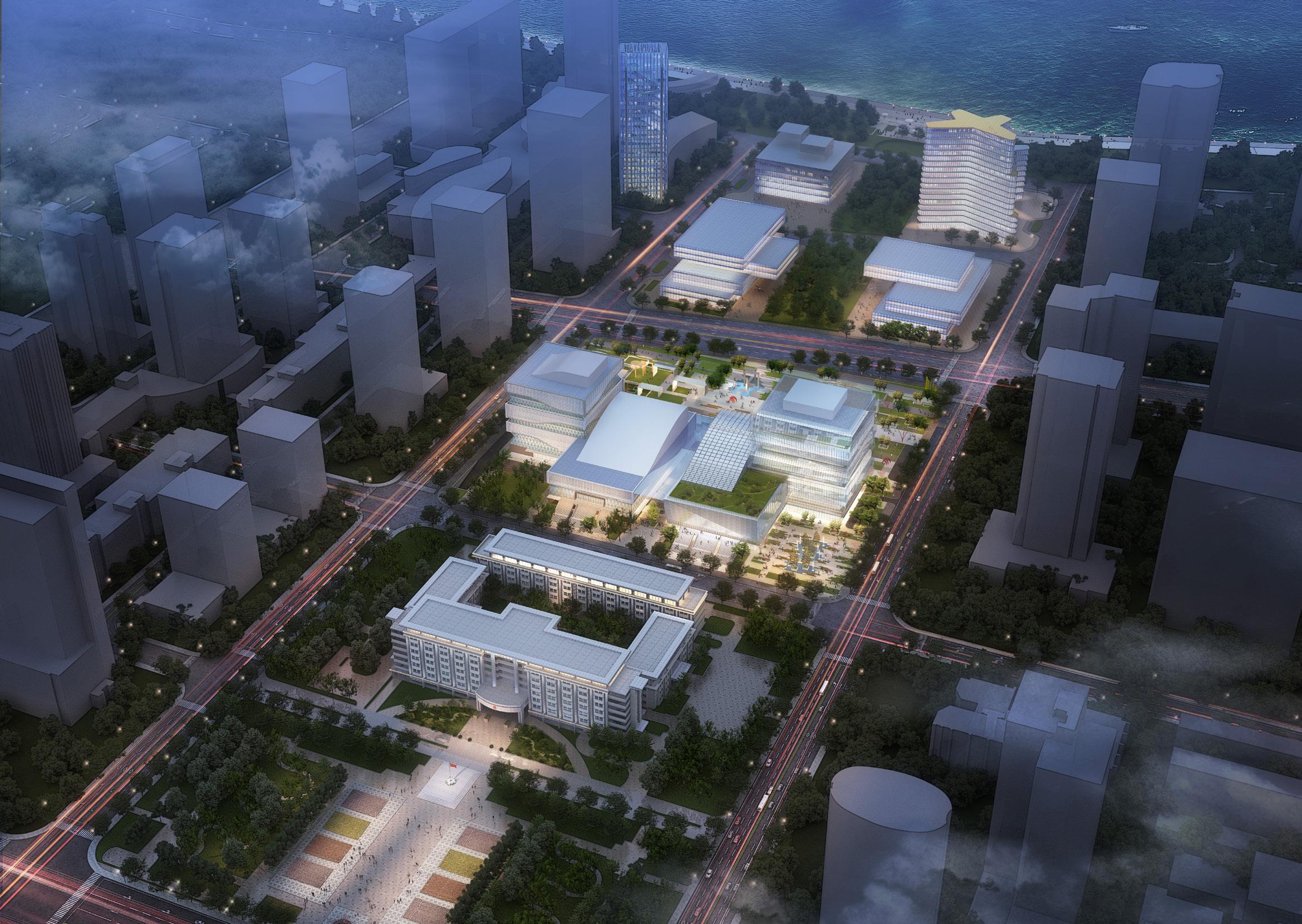 The site is located adjacent to the Binjiang District Cultural Center in the Binjiang District of Hangzhou City, next to the Qiantang River and across the river from Qianjiang New Town. The design process took into consideration how to take the Government of Binjiang District as the core to improve the landscape quality and strengthen the connection with the Binjiang Park.