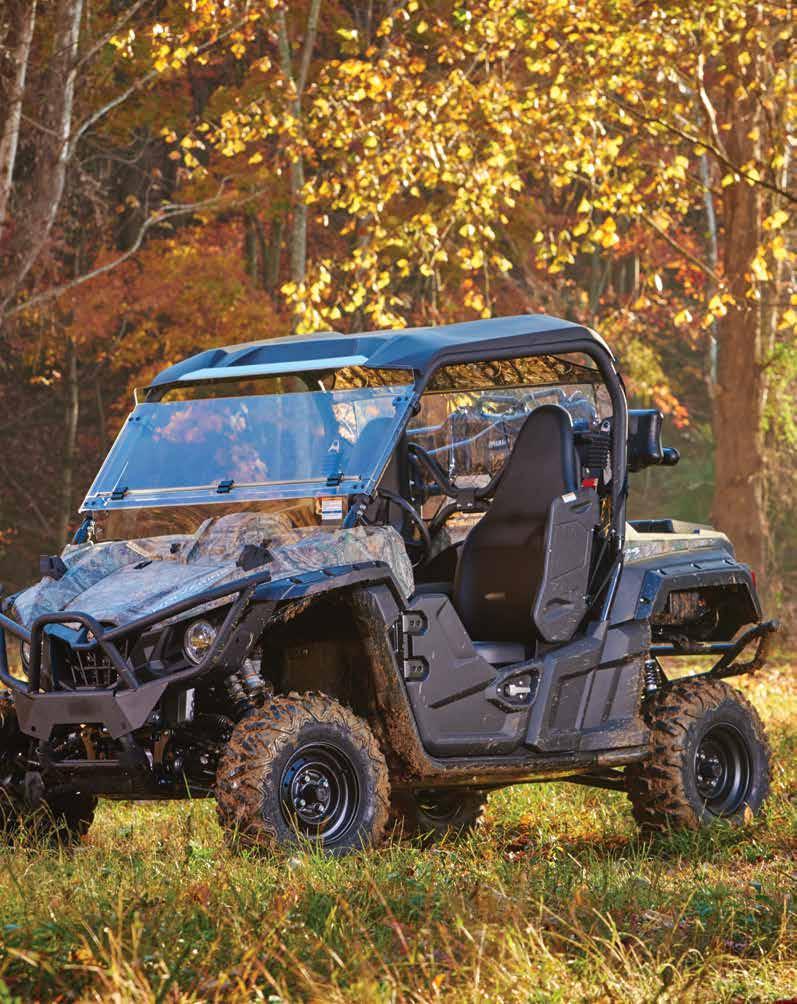 FOLDING WINDSHIELD 2MB-F83J0-V0-00 See Pg.20 A for full product details ACCESSORY LIGHT KITS - FLOOD 2HC-H4104-L0-00 See Pg.10 B for full product details OVERFENDERS 2HC-F15E0-V0-00 See Pg.18 D for full product details DESERT FRONT GRAB BAR WITH WINCH PLATE 2HC-F84L0-T0-00 See Pg.16 E for full product details VANTAGE 3000 WINCH BY WARN® SSV-F740C-T0-00 See Pg.19 A for full product details A B C D E C D E B 5 4 A TRAIL PACKAGE Always wear your seat belt, helmet, eye protection and protective clothing. YXZ1000R is recommended for experienced operators only.