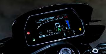 The 3.5in full-colour TFT display features a bartype tachometer that changes colour as rpm rises or falls, as well as a clock and displays for fuel, average mileage, water temperature, air temperature and a gearshift indicator. Handlebar switches enable you to easily change displays and information, as well as adjust the settings on the optional Genuine Yamaha grip heaters.
