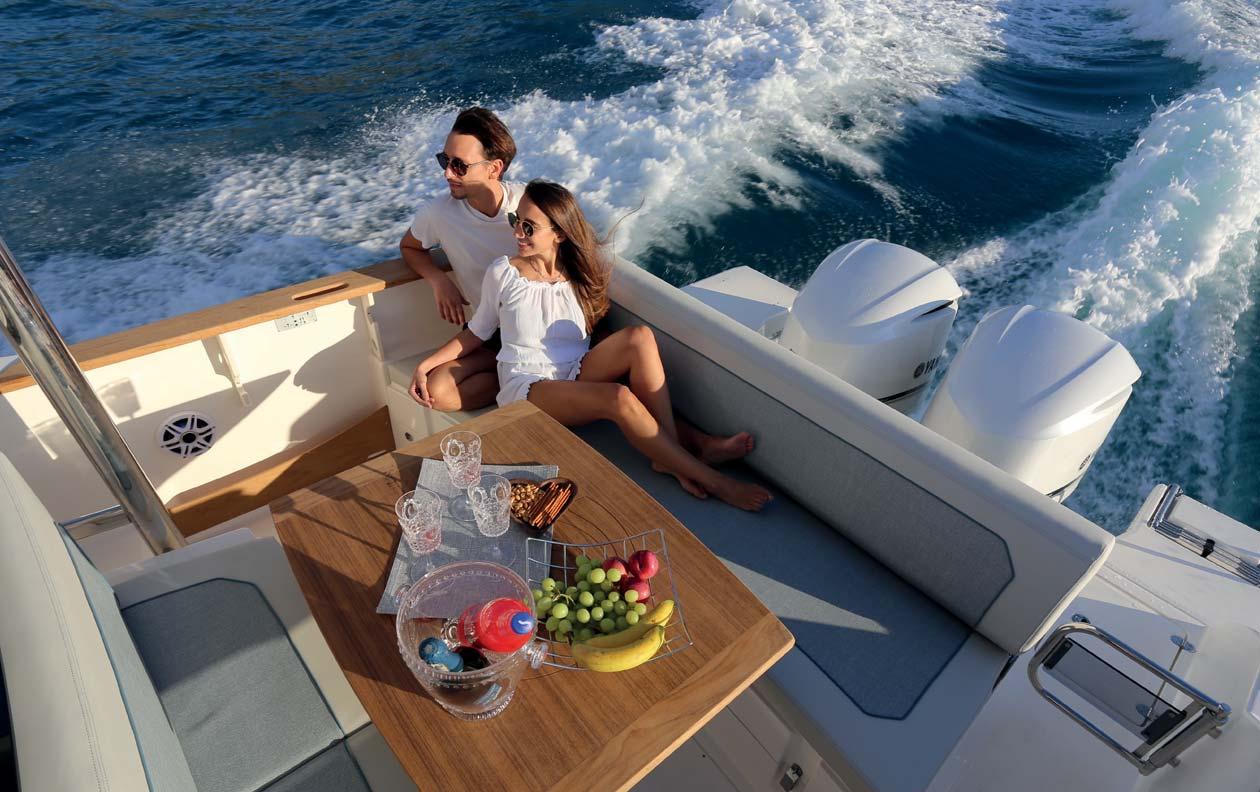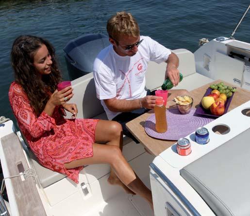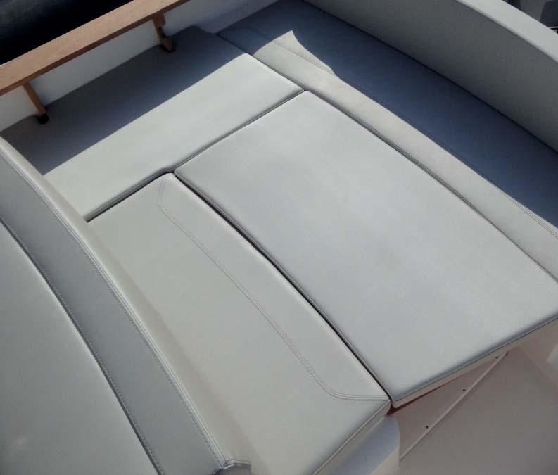 Di serie lo schienale di panca poppa abbattibile / STD collapsible stern bench backrest