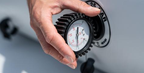 Un sistema di deflettori d’aria sapientemente progettato è incorporato nei tubi dello scafo di tutti i gommoni gonfiabili YAM. Ciò non solo consente di mantenere le singole camere completamente sigillate per garantire sicurezza, ma anche di mantenere ed equilibrare la pressione dell’aria lungo tutto il tubo. Le imbarcazioni della serie Air sono dotate di un manometro per assicurare un corretto gonfiaggio di scafo e pianale.