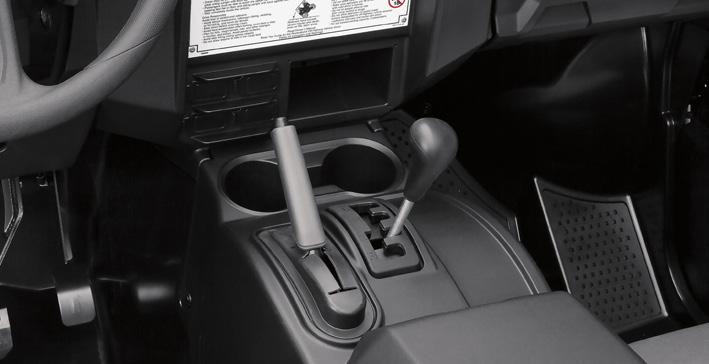 The CVT drive line features Manual selection for Forward and Reverse. Including a High and Low ratio options for the forward gears as well as a Park position which mechanically locks the gearbox to prevent the wheels turning.