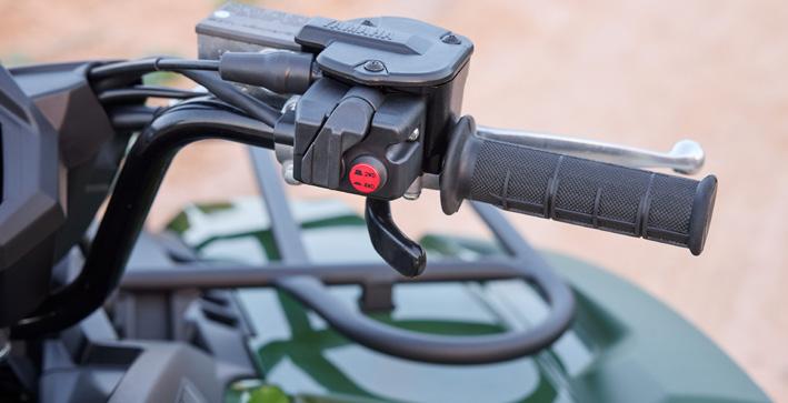 Kodiak 450 EPS SE-modellerna har ett lätthanterligt On-Command®-system med tvåhjuls-/fyrhjulsdrift och fyrhjulsdrift med Diff Lock för full kontroll och snabb växling mellan två- och fyrhjulsdrift, eller till och med full differentialspärr så att du kan välja rätt alternativ för terrängen eller underlaget.