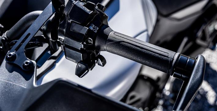 7” TFT har tre temaer og leveres med Garmin LinkBox-tilslutningsmuligheder for at give integreret navigation, mens samtaler, beskeder og musik kan modtages via Yamaha MyRide-appen og styres ved hjælp af 5-vejs joysticket på venstre kontaktenhed. En dedikeret opbevaringsboks til smartphonen omfatter et USB-A-strømudtag til opladning på farten.