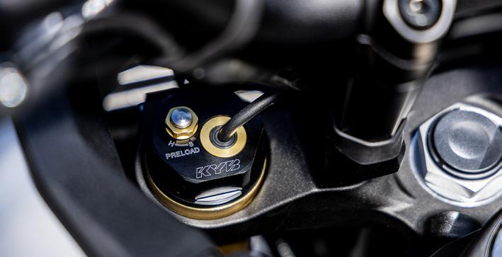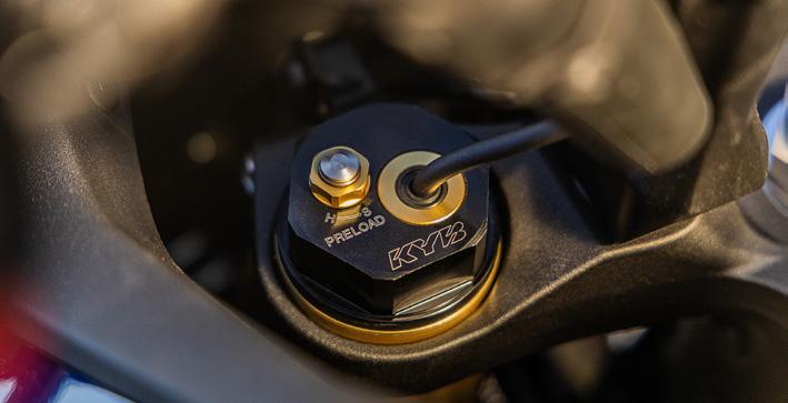KYB’s elektroniske affjedring KADS (KYB Actimatic Damper System) er det mest avancerede system, der findes på nogen Yamahaproduktionsmotorcykel. De justerbare enheder, der styres af den seksaksede IMU og ECU, er forbundet med YRC-tilstand og justerer dynamisk dæmpningen for at give en optimal køreoplevelse under mange forskellige belastnings- og vejforhold.