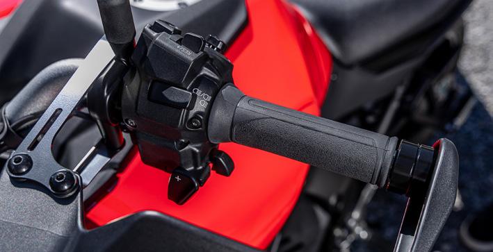 af menneskekroppens mest taktile og effektive værktøjer. Gearskift med hånden i stedet for en kombination af fod og hånd kræver mindre tænketid, så du kan holde fokus på gasrulle og bremser, nedlægningsvinkel, kropsposition og grip for at få mere intens kørsel. Med Y-AMT behøver du ikke at flytte din venstre fod fra fodhvileren, så du kan fokusere på kropsstilling og vægtfordeling gennem hvilerne for at forbedre kontrollen over motorcyklen, især i sving.
