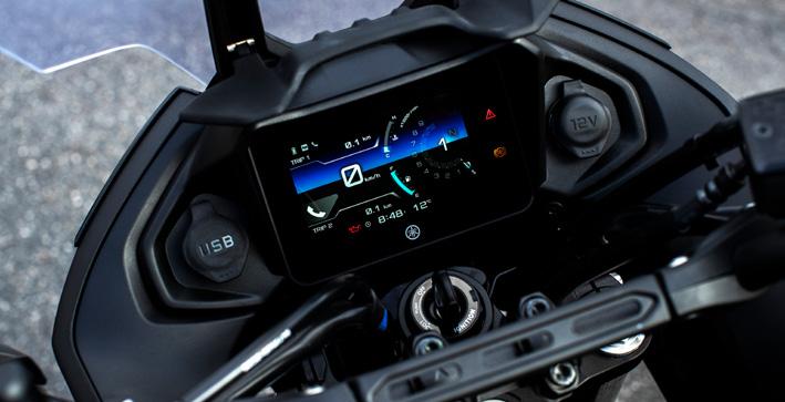 7-tommers TFT har tre temaer og leveres med Garmin Motorize-tilkobling for å gi integrert navigasjon. Anrop, meldinger og musikk kan mottas via Yamaha MyRide-appen og styres ved hjelp av en femveis joystick på venstre bryterarrangement. En dedikert integrert lagring inkluderer et USB-A-uttak for lading mens du er på farten.