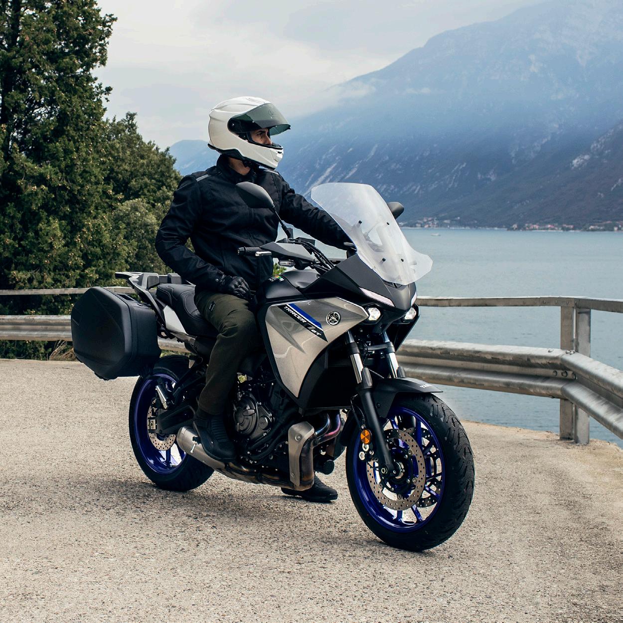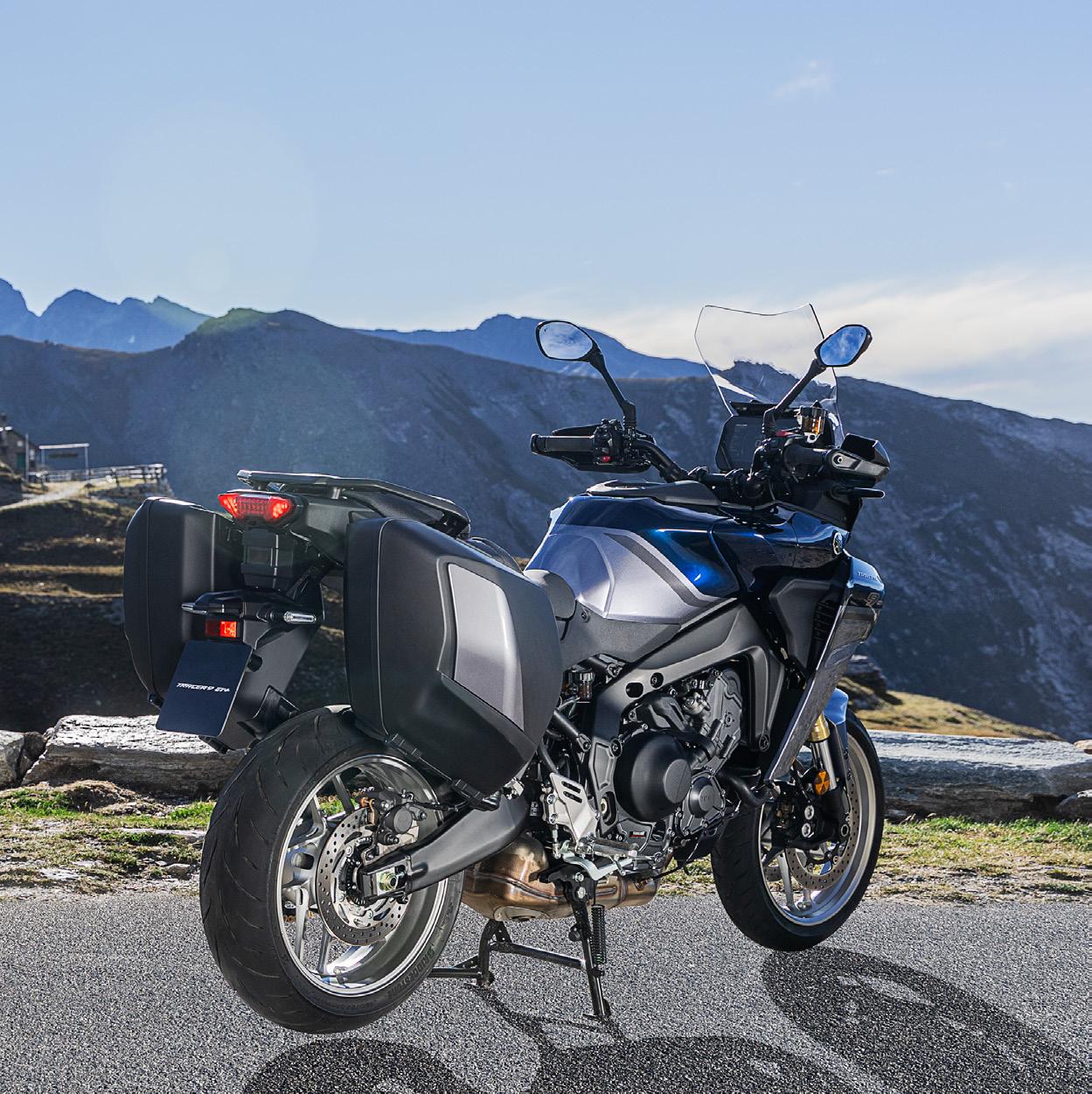 Travel Pack øker både komforten og oppbevaringsplassen, og sørger for at TRACER 9 GT er klar for langtur. Komfortsetene for fører og passasjer sørger for at alle sitter godt, og med den nøkkelfrie 45-liters toppboksen er det slutt på å knote med nøkler. Ryggstøtten og Touringskjermen øker komforten for både passasjer og fører.