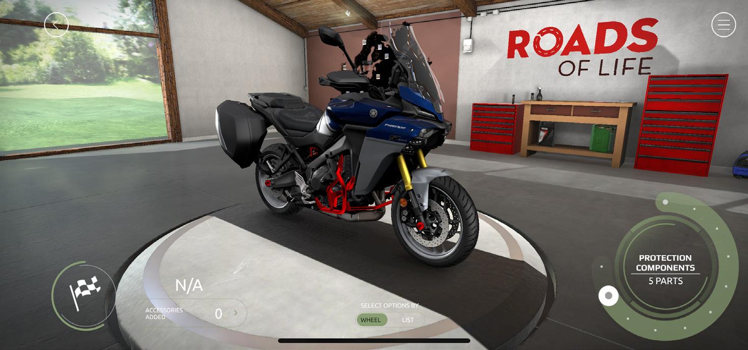 Med MyGarage kan du lägga till och ta bort ett stort antal originaltillbehör och se motorcykeln ur olika vinklar.