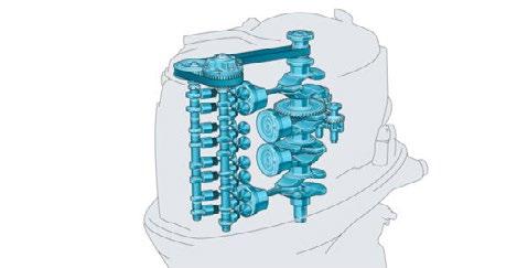 Med to indsugnings- og udstødningsventiler pr. cylinder – og med dobbelte knastaksler, hver drevet individuelt – forbedres indsugningsog udstødningseffektiviteten dramatisk, hvilket optimerer brændstofforbruget og forbrændingen. TCI-tændingssystemet sikrer nem start, jævn drift, længere levetid for tændrørene og enestående pålidelighed.
