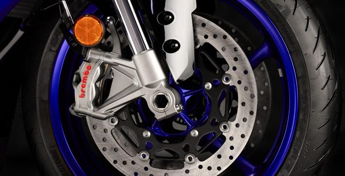 R9 har tävlingsinspirerade Brembo Stylemamonoblockbromsok som är lätta, stela och utformade för att ge bättre kontroll och stabilitet vid inbromsning. Nätbelagda bromsslangar i rostfritt stål och stora 320 mm frambromsskivor ger utmärkt jämn bromsning och kontrollerbar känsla, särskilt vid kraftig bromsning. Brembos radiella huvudcylinder har en kolv som rör sig i en riktning som är parallell med bromshandtaget. Med ett linjärt tryck drar föraren i spaken vilket ger en förfinad känsla av kontroll.
