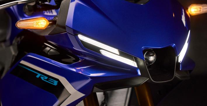 Du behöver inte se Yamaha-logotypen för att veta att denna fantastiska nya Supersport ingår i den legendariska R-serien. Den lätta helkåpan med undre paneler av aluminium har givetvis R-seriens DNA och de tuffa dubbla strålkastarna med M-format luftintag och en kraftfull, central LED-strålkastare.